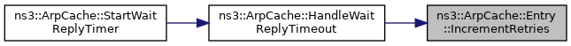 Here is the call graph for this function:| void ns3::ArpCache::Entry::IncrementRetries | ( | ) |