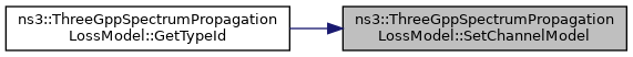 Here is the call graph for this function:| void ns3::ThreeGppSpectrumPropagationLossModel::SetChannelModel | ( | Ptr< MatrixBasedChannelModel > | channel | ) |