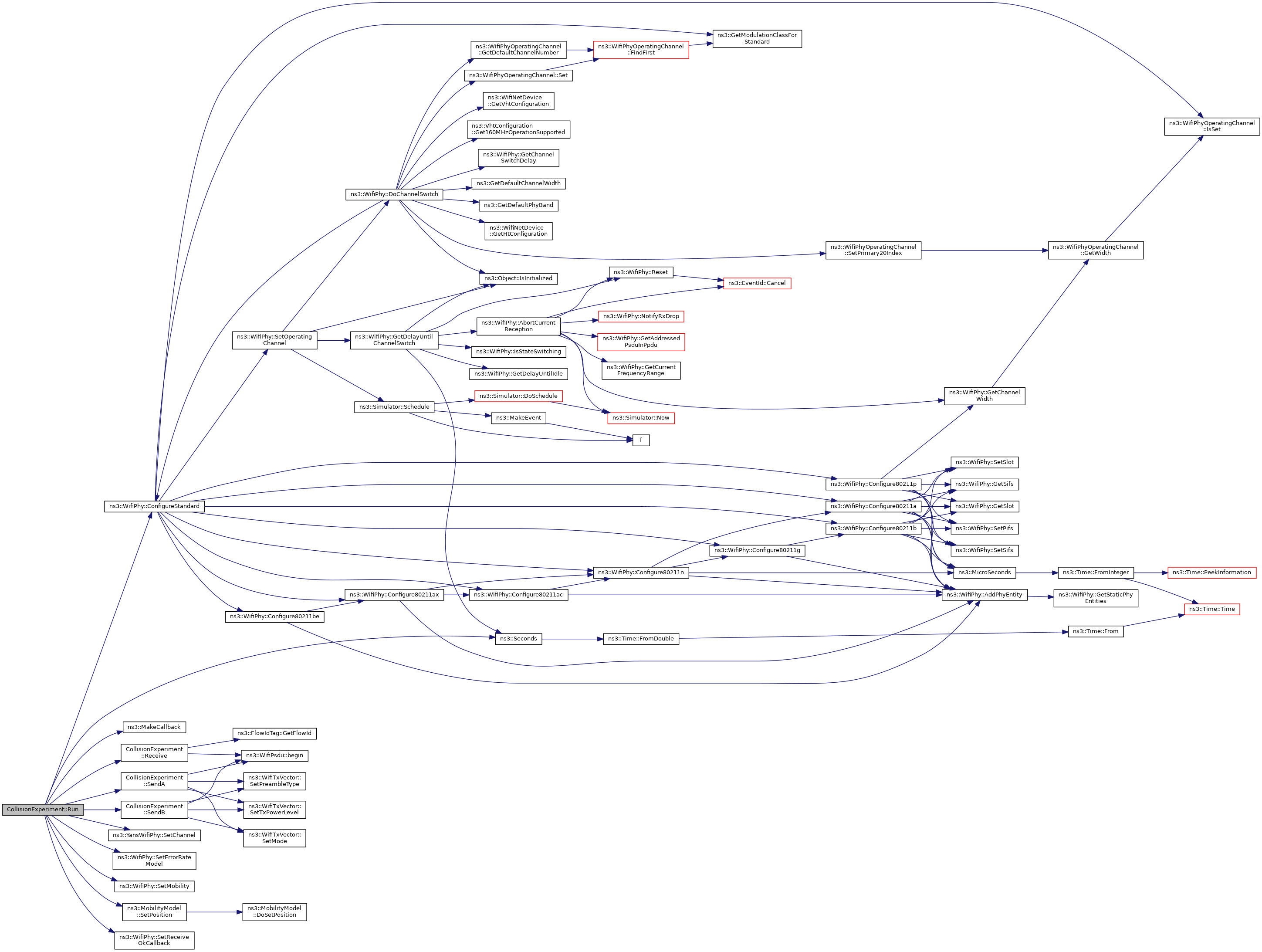References third::channel, ns3::WifiPhy::ConfigureStandard(), CollisionExperiment::Input::interval, m_flowIdA, m_flowIdB, m_input, m_output, m_txA, m_txB, ns3::MakeCallback(), CollisionExperiment::Input::nPackets, Receive(), CollisionExperiment::Output::receivedA, CollisionExperiment::Output::receivedB, ns3::Seconds(), SendA(), SendB(), ns3::YansWifiPhy::SetChannel(), ns3::WifiPhy::SetErrorRateModel(), ns3::WifiPhy::SetMobility(), ns3::MobilityModel::SetPosition(), ns3::WifiPhy::SetReceiveOkCallback(), ns3::WIFI_STANDARD_80211a, CollisionExperiment::Input::xA, and CollisionExperiment::Input::xB.