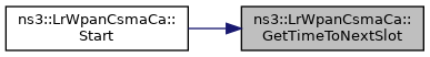 Referenced by LrWpanCsmaCa(), GetTimeLeftInCap(), GetTimeToNextSlot(), and Start().