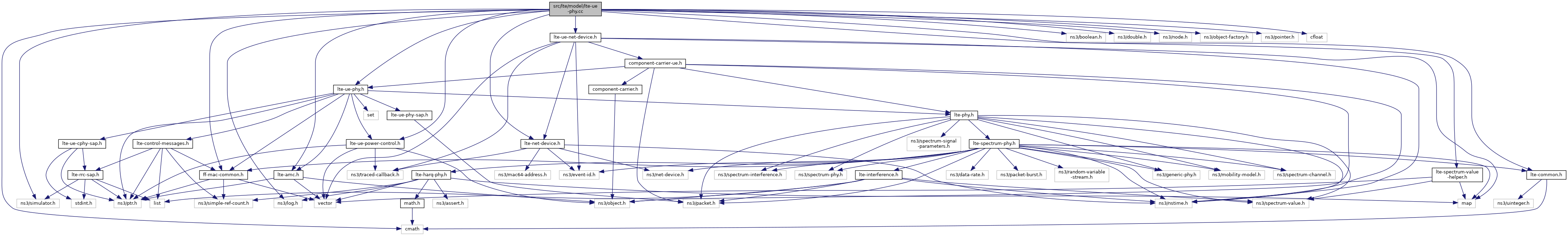 Include dependency graph for lte-ue-phy.cc:Go to the source code of this file.