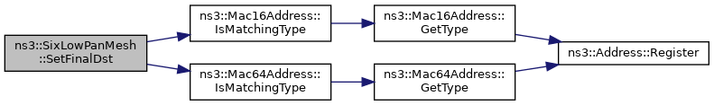 Here is the call graph for this function:| void ns3::SixLowPanMesh::SetFinalDst | ( | Address | finalDst | ) |