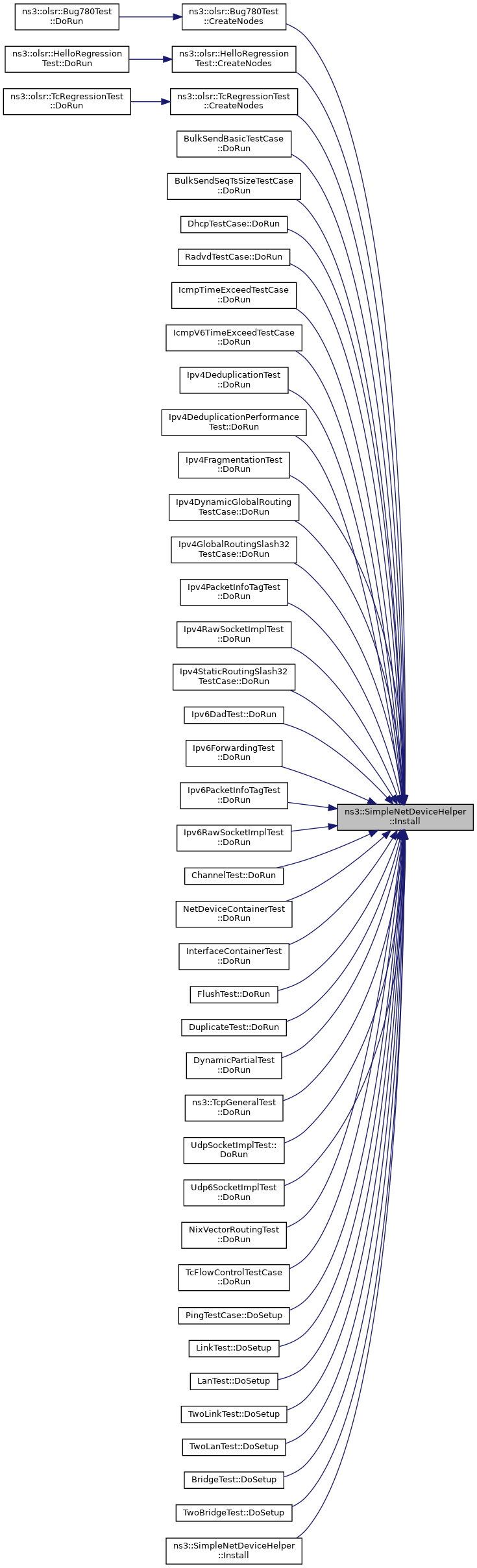 Here is the caller graph for this function:| NetDeviceContainer ns3::SimpleNetDeviceHelper::Install | ( | Ptr< Node > | node, |