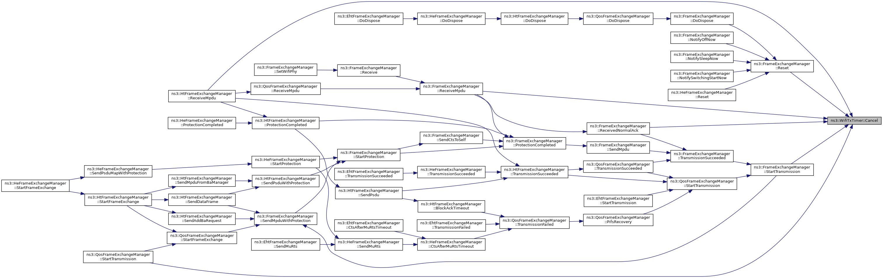 Here is the call graph for this function:| void ns3::WifiTxTimer::Cancel | ( | ) |