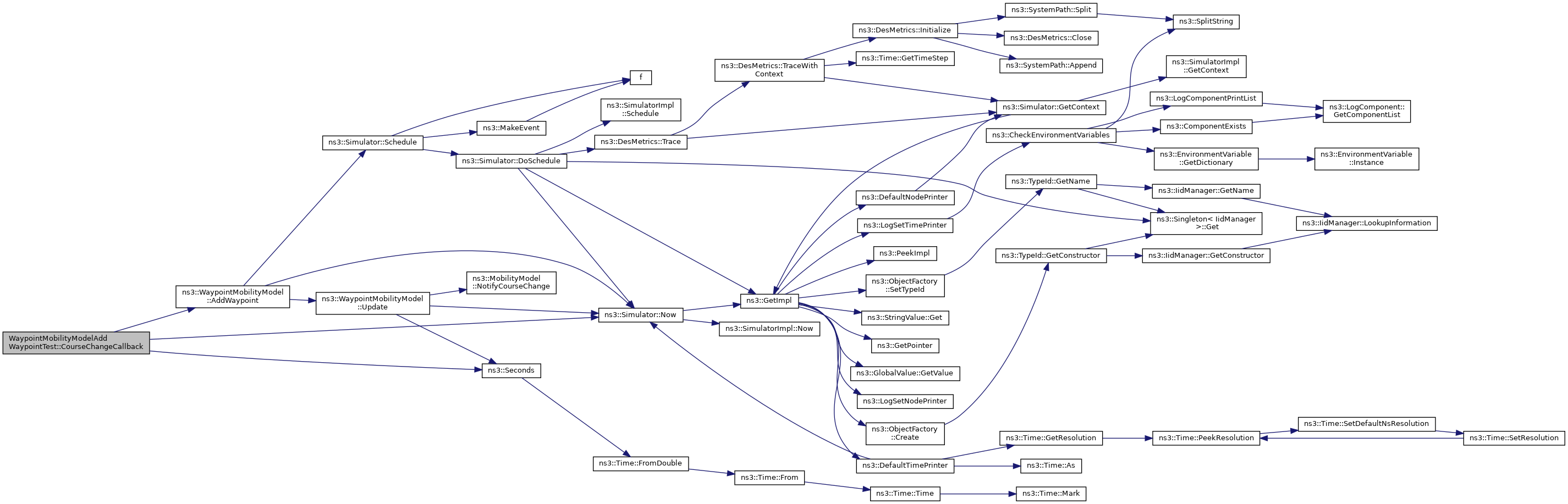 References ns3::WaypointMobilityModel::AddWaypoint(), CourseChangeCallback(), ns3::ObjectFactory::Create(), ns3::Simulator::Destroy(), ns3::Object::GetObject(), ns3::Object::Initialize(), ns3::MakeCallback(), ns3::Simulator::Run(), ns3::Simulator::Schedule(), ns3::Seconds(), ns3::ObjectFactory::Set(), ns3::ObjectFactory::SetTypeId(), ns3::Simulator::Stop(), and ns3::ObjectBase::TraceConnectWithoutContext().