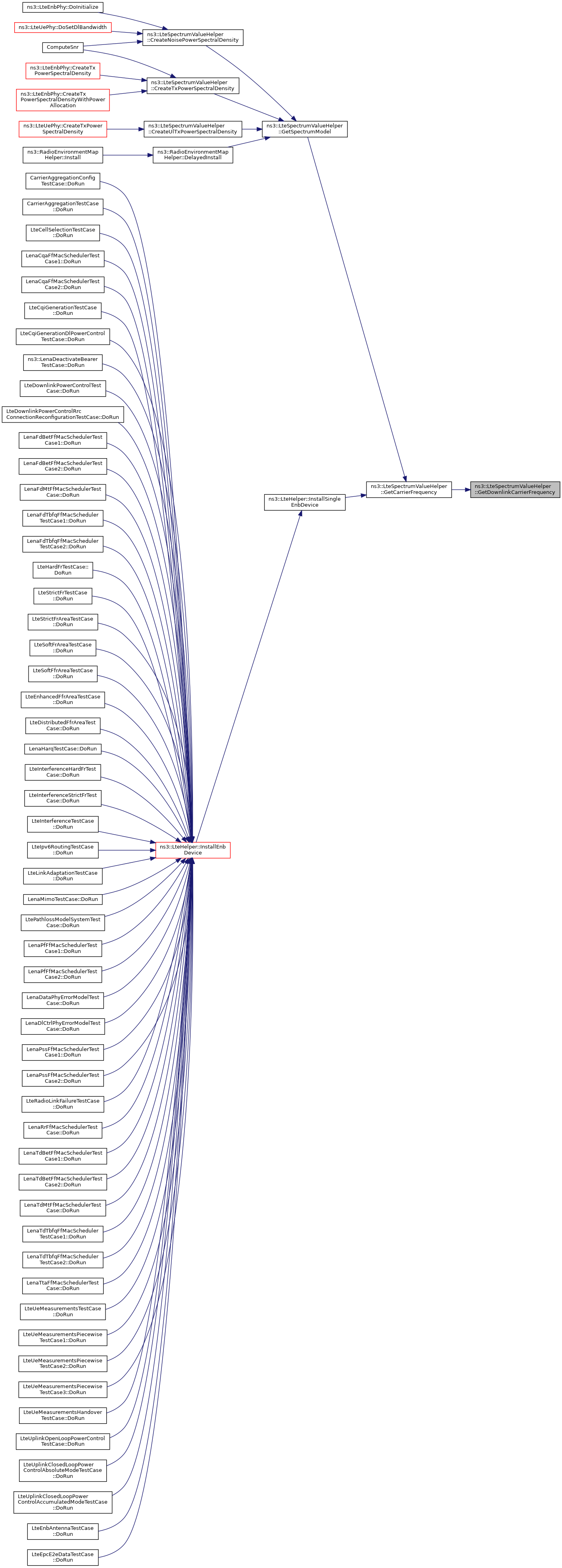 References GetDownlinkCarrierFrequency(), GetUplinkCarrierFrequency(), and NS_LOG_FUNCTION.