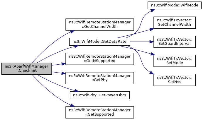 References ns3::WifiRemoteStationManager::GetChannelWidth(), ns3::WifiMode::GetDataRate(), ns3::WifiRemoteStationManager::GetNSupported(), ns3::WifiRemoteStationManager::GetPhy(), ns3::WifiPhy::GetPowerDbm(), ns3::WifiRemoteStationManager::GetSupported(), ns3::WifiRemoteStationState::m_address, ns3::AparfWifiRemoteStation::m_critRateIndex, ns3::AparfWifiRemoteStation::m_initialized, m_maxPower, ns3::AparfWifiRemoteStation::m_nSupported, m_powerChange, ns3::AparfWifiRemoteStation::m_powerLevel, ns3::AparfWifiRemoteStation::m_prevPowerLevel, ns3::AparfWifiRemoteStation::m_prevRateIndex, m_rateChange, ns3::AparfWifiRemoteStation::m_rateIndex, and ns3::WifiRemoteStation::m_state.
