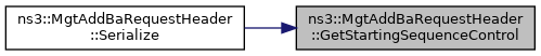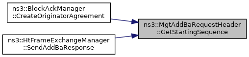 Here is the call graph for this function:| uint16_t ns3::MgtAddBaRequestHeader::GetStartingSequence | ( | ) | const |