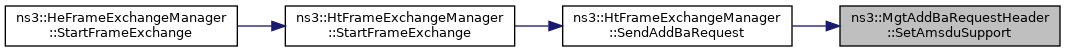 Here is the call graph for this function:| void ns3::MgtAddBaRequestHeader::SetAmsduSupport | ( | bool | supported | ) |