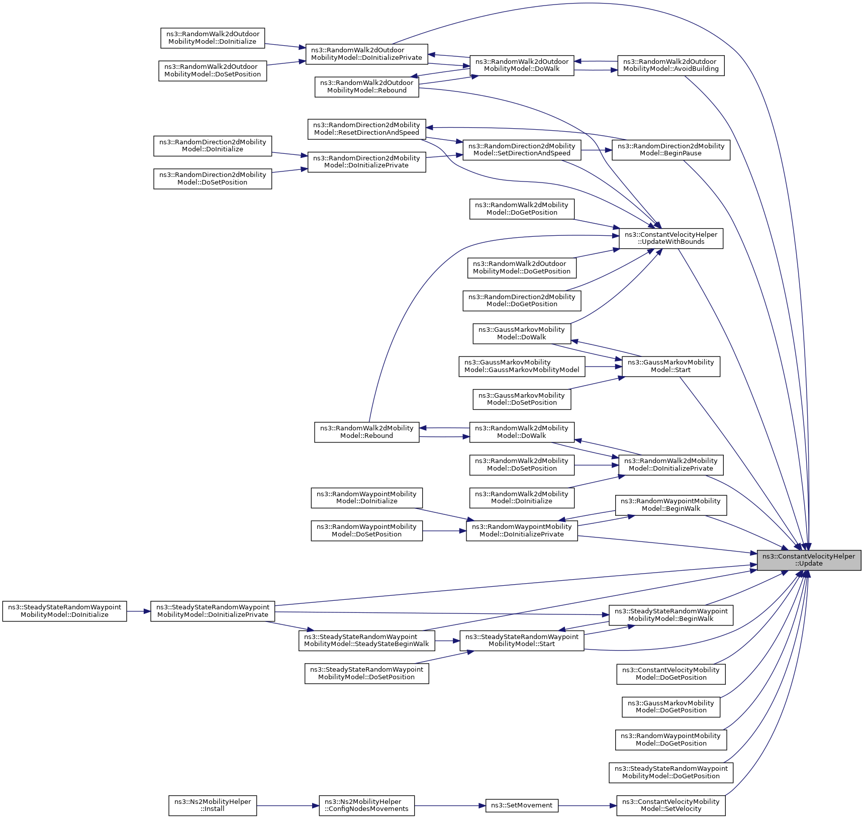 Here is the caller graph for this function:| void ns3::ConstantVelocityHelper::Update | ( | ) | const |