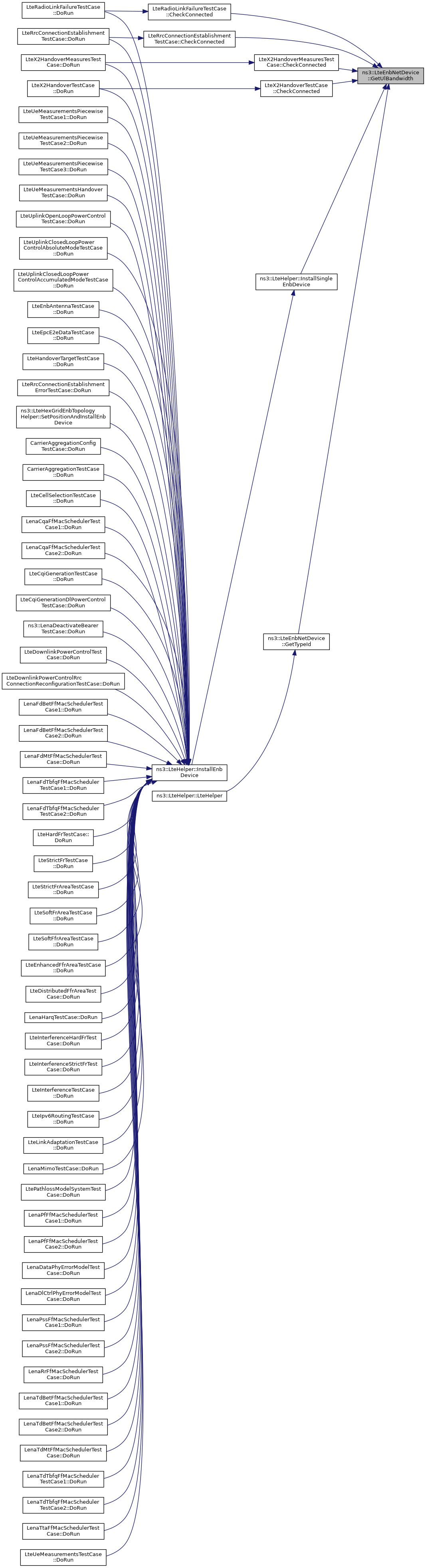 Here is the caller graph for this function:| uint32_t ns3::LteEnbNetDevice::GetUlEarfcn | ( | ) | const |