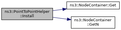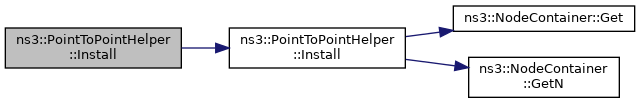 Here is the call graph for this function:| NetDeviceContainer ns3::PointToPointHelper::Install | ( | std::string | aNode, |