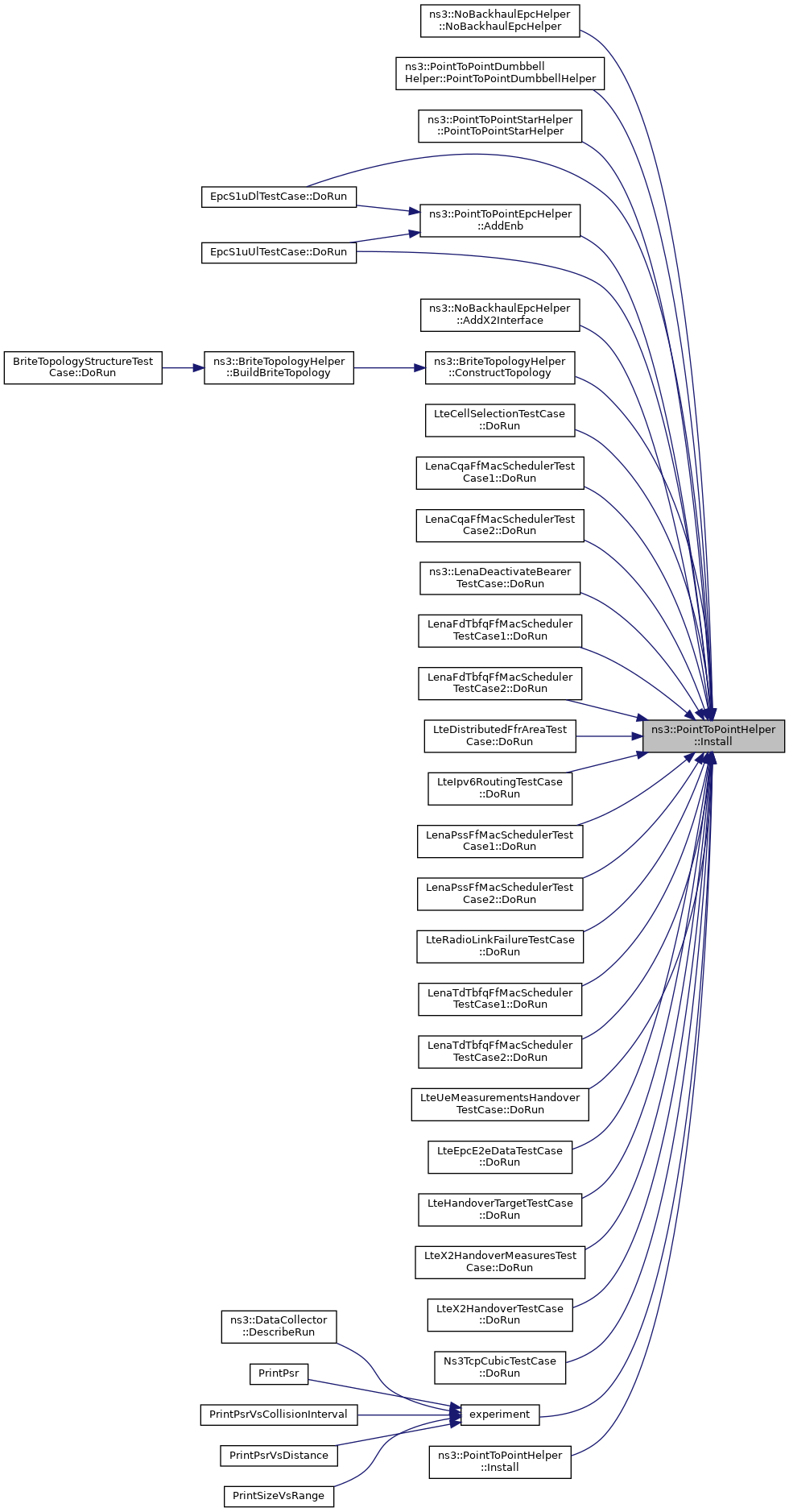 Referenced by ns3::NoBackhaulEpcHelper::NoBackhaulEpcHelper(), ns3::PointToPointDumbbellHelper::PointToPointDumbbellHelper(), ns3::PointToPointStarHelper::PointToPointStarHelper(), ns3::PointToPointEpcHelper::AddEnb(), ns3::NoBackhaulEpcHelper::AddX2Interface(), ns3::BriteTopologyHelper::ConstructTopology(), EpcS1uDlTestCase::DoRun(), EpcS1uUlTestCase::DoRun(), LteCellSelectionTestCase::DoRun(), LenaCqaFfMacSchedulerTestCase1::DoRun(), LenaCqaFfMacSchedulerTestCase2::DoRun(), ns3::LenaDeactivateBearerTestCase::DoRun(), LenaFdTbfqFfMacSchedulerTestCase1::DoRun(), LenaFdTbfqFfMacSchedulerTestCase2::DoRun(), LteDistributedFfrAreaTestCase::DoRun(), LteIpv6RoutingTestCase::DoRun(), LenaPssFfMacSchedulerTestCase1::DoRun(), LenaPssFfMacSchedulerTestCase2::DoRun(), LteRadioLinkFailureTestCase::DoRun(), LenaTdTbfqFfMacSchedulerTestCase1::DoRun(), LenaTdTbfqFfMacSchedulerTestCase2::DoRun(), LteUeMeasurementsHandoverTestCase::DoRun(), LteEpcE2eDataTestCase::DoRun(), LteHandoverTargetTestCase::DoRun(), LteX2HandoverMeasuresTestCase::DoRun(), LteX2HandoverTestCase::DoRun(), Ns3TcpCubicTestCase::DoRun(), experiment(), and Install().
