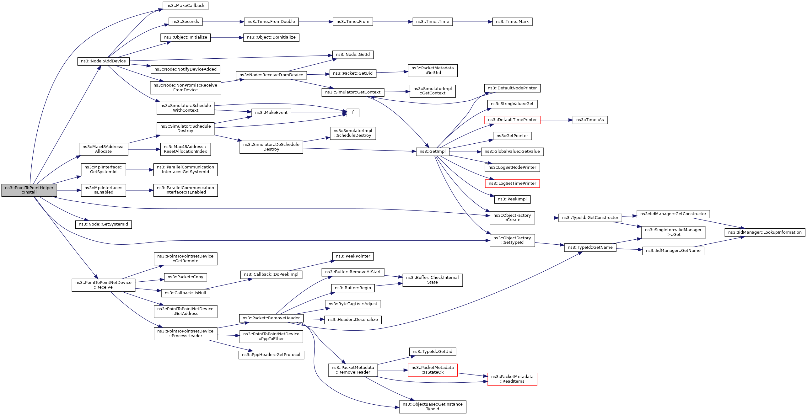 Here is the call graph for this function:| NetDeviceContainer ns3::PointToPointHelper::Install | ( | Ptr< Node > | a, |