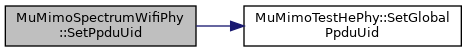 Here is the call graph for this function:| void MuMimoSpectrumWifiPhy::SetPpduUid | ( | uint64_t | uid | ) |