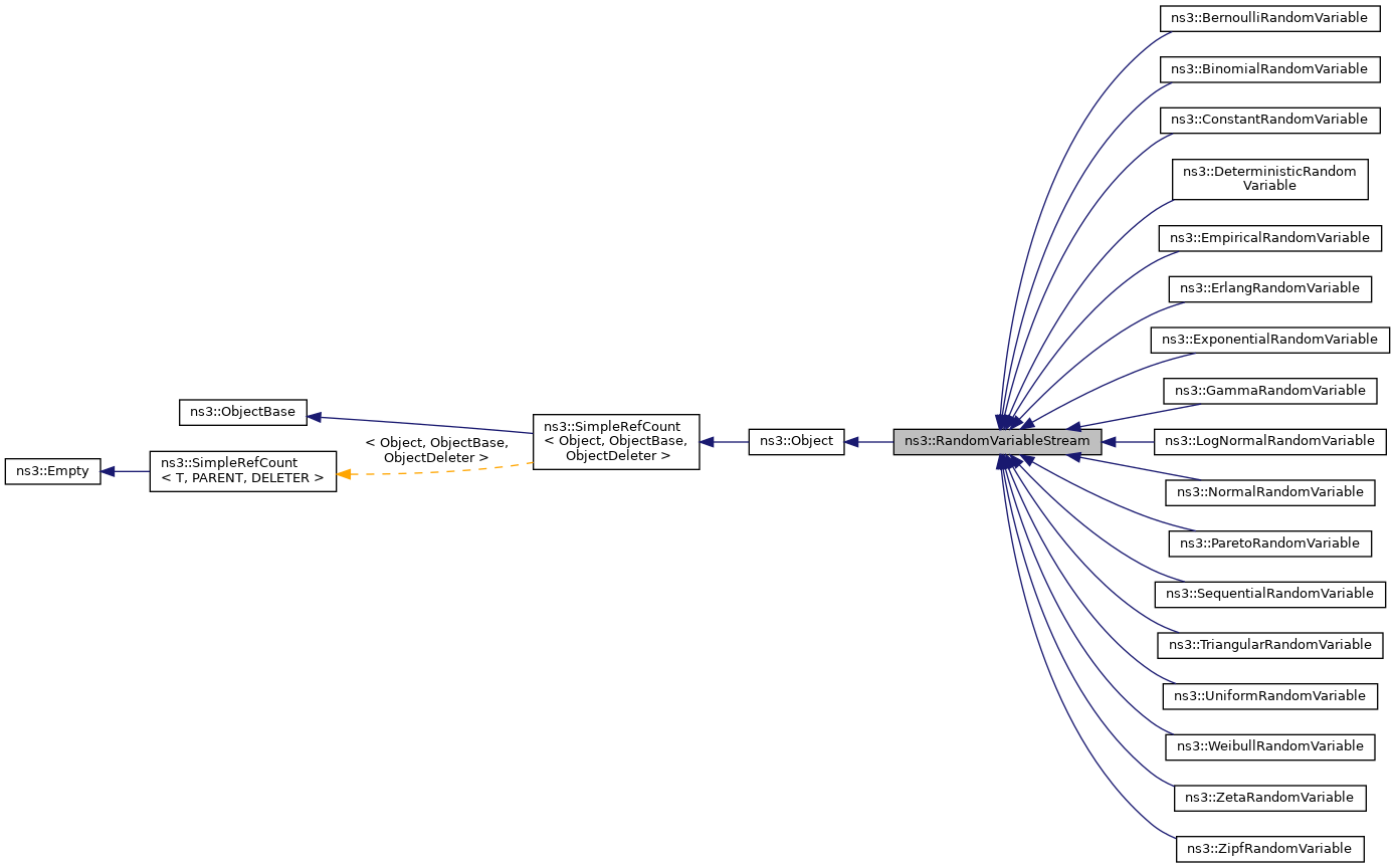 ns-3 has a rich set of random number generators that allow stream numbers to be set deterministically if desired. Class RandomVariableStream defines the base class functionality required for all such random number generators.