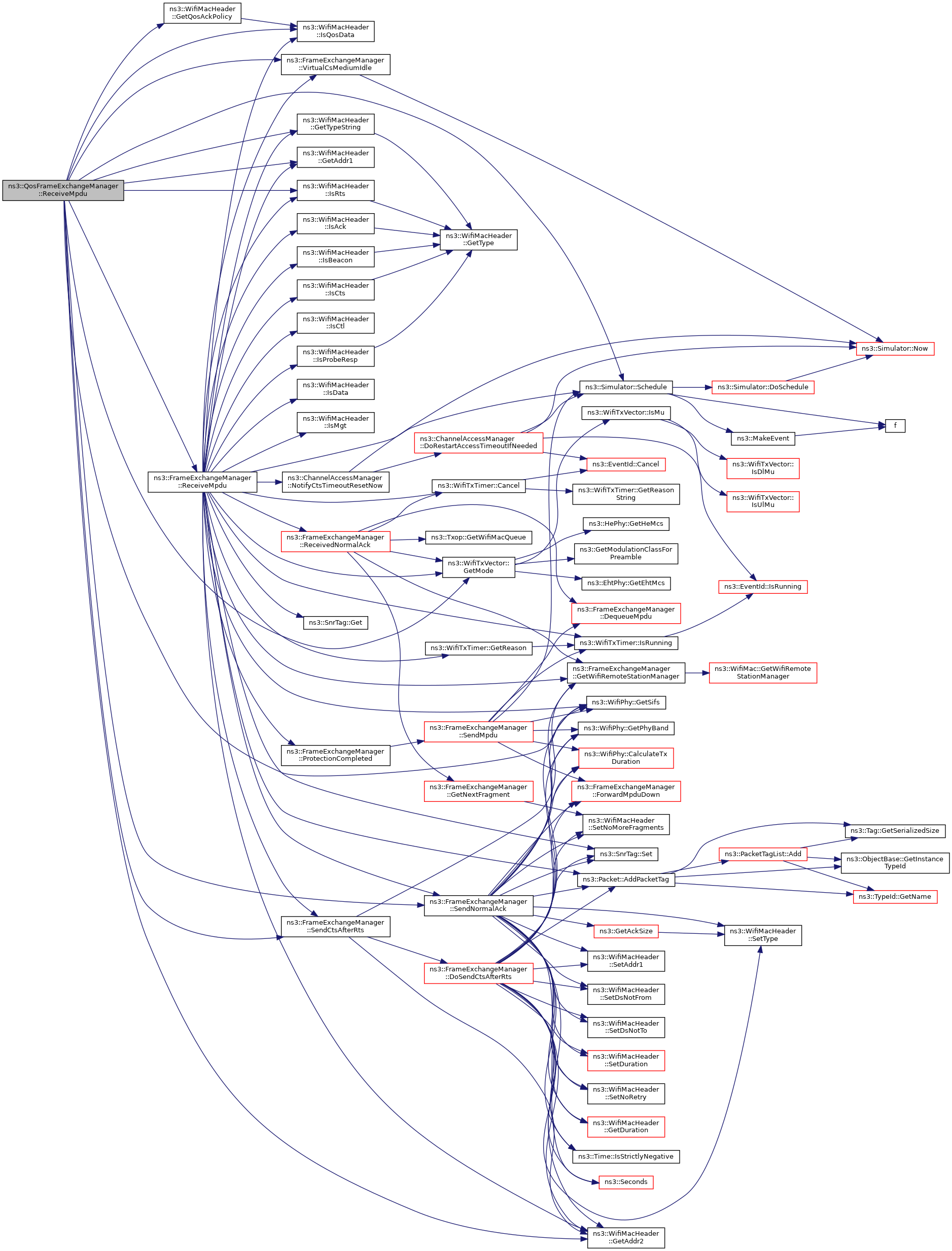 References ns3::WifiMacHeader::GetAddr1(), ns3::WifiMacHeader::GetAddr2(), ns3::WifiTxVector::GetMode(), ns3::WifiMacHeader::GetQosAckPolicy(), ns3::WifiPhy::GetSifs(), ns3::WifiMacHeader::GetTypeString(), ns3::WifiMacHeader::IsQosData(), ns3::WifiMacHeader::IsRts(), ns3::FrameExchangeManager::m_linkId, ns3::FrameExchangeManager::m_phy, ns3::FrameExchangeManager::m_rxMiddle, ns3::FrameExchangeManager::m_self, m_txopHolder, ns3::WifiMacHeader::NORMAL_ACK, NS_ABORT_MSG_IF, NS_ASSERT, NS_LOG_DEBUG, ns3::FrameExchangeManager::ReceiveMpdu(), ns3::Simulator::Schedule(), ns3::FrameExchangeManager::SendCtsAfterRts(), ns3::FrameExchangeManager::SendNormalAck(), ns3::RxSignalInfo::snr, and ns3::FrameExchangeManager::VirtualCsMediumIdle().