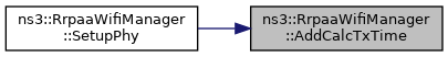 References GetCalcTxTime(), ns3::Time::GetSeconds(), ns3::WifiRemoteStationManager::GetSupported(), m_alpha, m_beta, m_difs, ns3::WifiRrpaaThresholds::m_ewnd, ns3::WifiRrpaaThresholds::m_mtl, ns3::RrpaaWifiRemoteStation::m_nRate, ns3::WifiRrpaaThresholds::m_ori, m_sifs, m_tau, ns3::RrpaaWifiRemoteStation::m_thresholds, NS_LOG_DEBUG, and NS_LOG_FUNCTION.