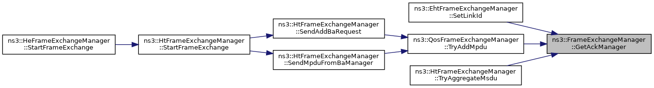 Referenced by ns3::EhtFrameExchangeManager::CreateAliasIfNeeded(), ns3::EhtFrameExchangeManager::CtsAfterMuRtsTimeout(), DequeueMpdu(), DoDispose(), ns3::EhtFrameExchangeManager::EmlsrSwitchToListening(), ns3::HtFrameExchangeManager::EndReceiveAmpdu(), FinalizeMacHeader(), ns3::HtFrameExchangeManager::FinalizeMacHeader(), ns3::QosFrameExchangeManager::ForwardMpduDown(), ns3::HtFrameExchangeManager::GetBaManager(), ns3::HtFrameExchangeManager::GetBar(), GetFirstFragmentIfNeeded(), ns3::EhtFrameExchangeManager::GetMostRecentRssi(), GetWifiRemoteStationManager(), ns3::HtFrameExchangeManager::MissedBlockAck(), ns3::HtFrameExchangeManager::NeedSetupBlockAck(), NormalAckTimeout(), ns3::HtFrameExchangeManager::NotifyPacketDiscarded(), ns3::HtFrameExchangeManager::NotifyReceivedNormalAck(), NotifySwitchingStartNow(), ns3::HtFrameExchangeManager::NotifyTxToEdca(), ns3::QosFrameExchangeManager::PreProcessFrame(), ns3::EhtFrameExchangeManager::ReceiveMpdu(), ns3::HtFrameExchangeManager::ReceiveMpdu(), ns3::HtFrameExchangeManager::ReleaseSequenceNumbers(), ns3::HtFrameExchangeManager::RetransmitMpduAfterMissedAck(), ns3::HtFrameExchangeManager::SendAddBaRequest(), ns3::HtFrameExchangeManager::SendAddBaResponse(), ns3::HtFrameExchangeManager::SendDataFrame(), ns3::HtFrameExchangeManager::SendDelbaFrame(), ns3::EhtFrameExchangeManager::SendEmlOmn(), ns3::EhtFrameExchangeManager::SendMuRts(), ns3::HtFrameExchangeManager::SendPsdu(), ns3::HeFrameExchangeManager::SendPsduMap(), ns3::HeFrameExchangeManager::SetMultiUserScheduler(), SetWifiMac(), and ns3::HeFrameExchangeManager::StartFrameExchange().