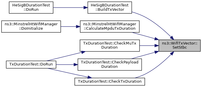 Here is the caller graph for this function:| void ns3::WifiTxVector::SetStbc | ( | bool | stbc | ) |