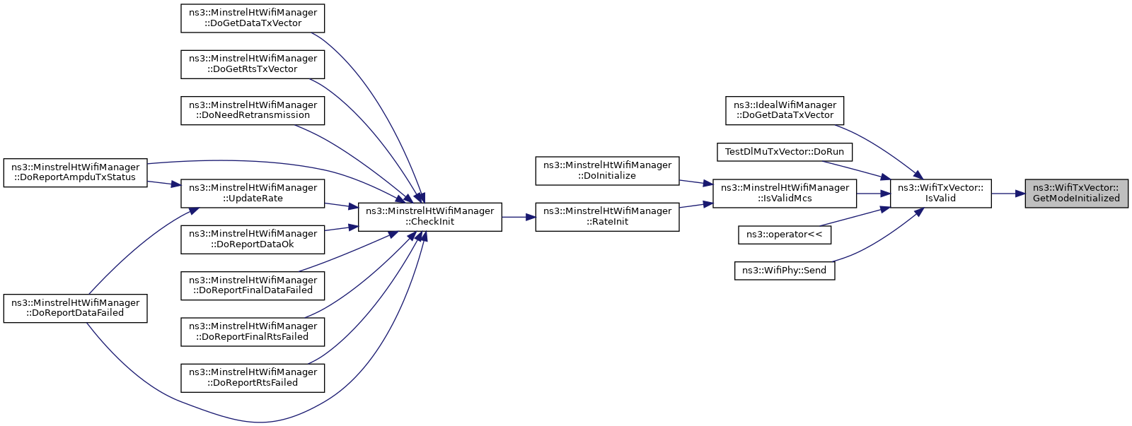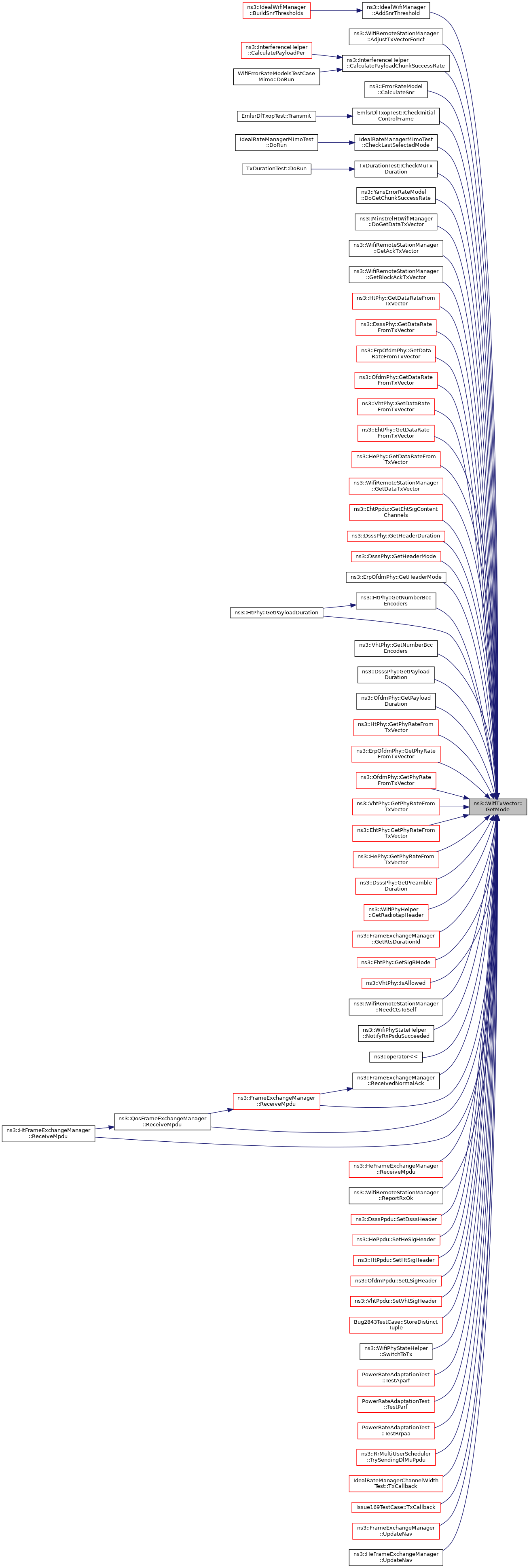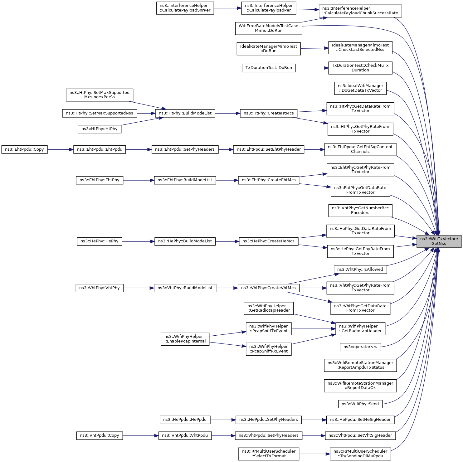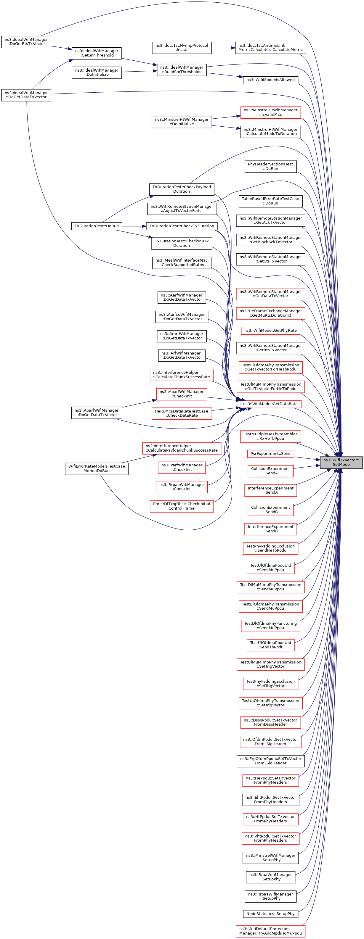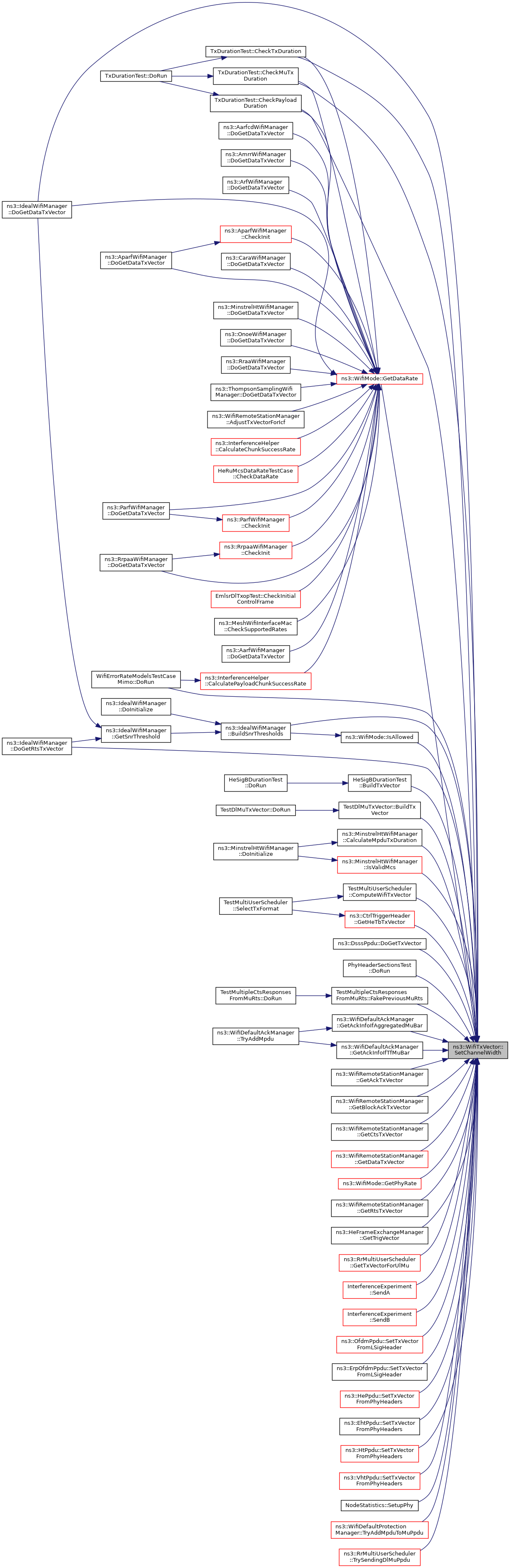 Referenced by ns3::WifiRemoteStationManager::AdjustTxVectorForIcf(), HeSigBDurationTest::BuildTxVector(), TestDlMuTxVector::BuildTxVector(), ns3::dot11s::AirtimeLinkMetricCalculator::CalculateMetric(), ns3::MinstrelHtWifiManager::CalculateMpduTxDuration(), TxDurationTest::CheckMuTxDuration(), TxDurationTest::CheckPayloadDuration(), TxDurationTest::CheckTxDuration(), TestMultiUserScheduler::ComputeWifiTxVector(), ns3::HePpdu::DoGetTxVector(), ns3::HtPpdu::DoGetTxVector(), ns3::DsssPpdu::DoGetTxVector(), ns3::OfdmPpdu::DoGetTxVector(), ns3::VhtPpdu::DoGetTxVector(), PhyHeaderSectionsTest::DoRun(), ns3::WifiDefaultAckManager::GetAckInfoIfAggregatedMuBar(), ns3::WifiDefaultAckManager::GetAckInfoIfTfMuBar(), ns3::WifiRemoteStationManager::GetAckTxVector(), ns3::WifiRemoteStationManager::GetBlockAckTxVector(), ns3::WifiRemoteStationManager::GetCtsTxVector(), ns3::WifiRemoteStationManager::GetDataTxVector(), ns3::CtrlTriggerHeader::GetHeTbTxVector(), ns3::WifiRemoteStationManager::GetRtsTxVector(), ns3::HeFrameExchangeManager::GetTrigVector(), ns3::RrMultiUserScheduler::GetTxVectorForUlMu(), TestMultiUserScheduler::SelectTxFormat(), PsrExperiment::Send(), CollisionExperiment::SendA(), InterferenceExperiment::SendA(), CollisionExperiment::SendB(), InterferenceExperiment::SendB(), ns3::MinstrelWifiManager::SetupPhy(), ns3::RraaWifiManager::SetupPhy(), ns3::RrpaaWifiManager::SetupPhy(), NodeStatistics::SetupPhy(), and ns3::RrMultiUserScheduler::TrySendingDlMuPpdu().