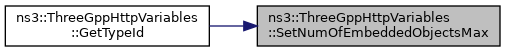 Here is the caller graph for this function:| void ns3::ThreeGppHttpVariables::SetNumOfEmbeddedObjectsMax | ( | uint32_t | max | ) |