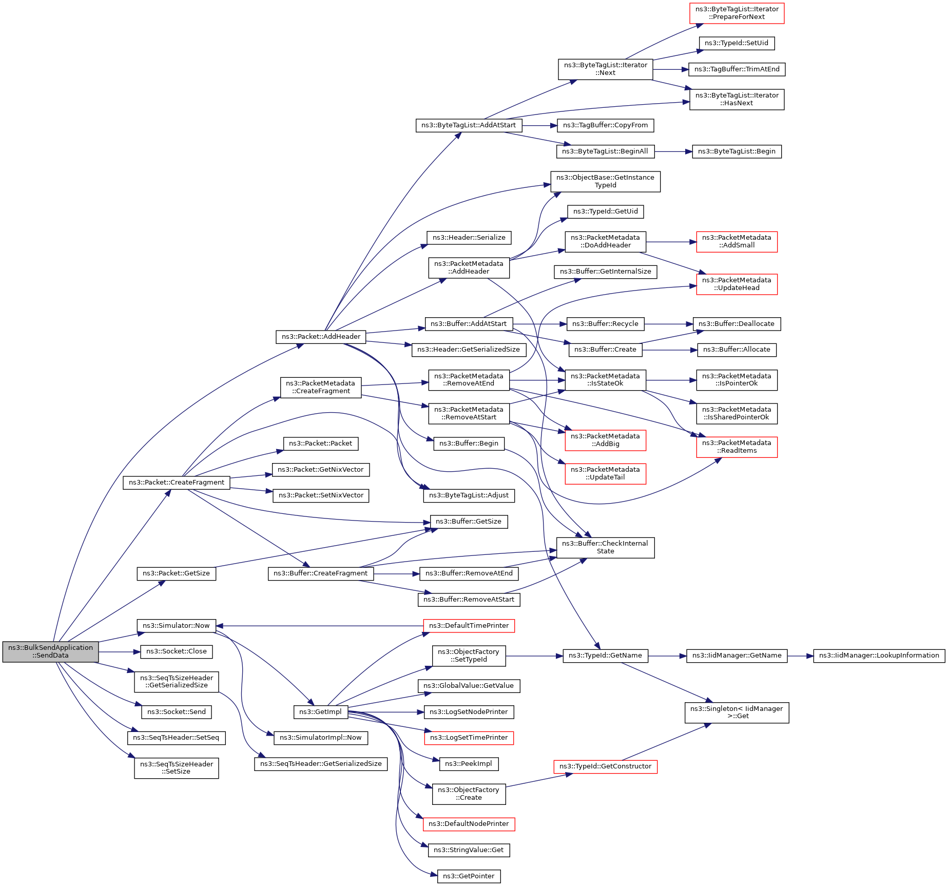References ns3::Packet::AddHeader(), ns3::Socket::Close(), ns3::Packet::CreateFragment(), ns3::SeqTsSizeHeader::GetSerializedSize(), ns3::Packet::GetSize(), m_connected, m_enableSeqTsSizeHeader, m_maxBytes, m_sendSize, m_seq, m_socket, m_totBytes, m_txTrace, m_txTraceWithSeqTsSize, m_unsentPacket, min, ns3::Simulator::Now(), NS_ABORT_IF, NS_FATAL_ERROR, NS_LOG_DEBUG, NS_LOG_FUNCTION, NS_LOG_LOGIC, ns3::Socket::Send(), ns3::SeqTsHeader::SetSeq(), and ns3::SeqTsSizeHeader::SetSize().