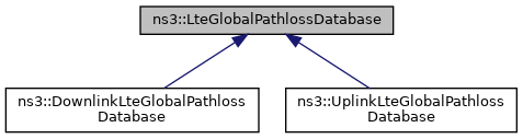 Inheritance diagram for ns3::LteGlobalPathlossDatabase: