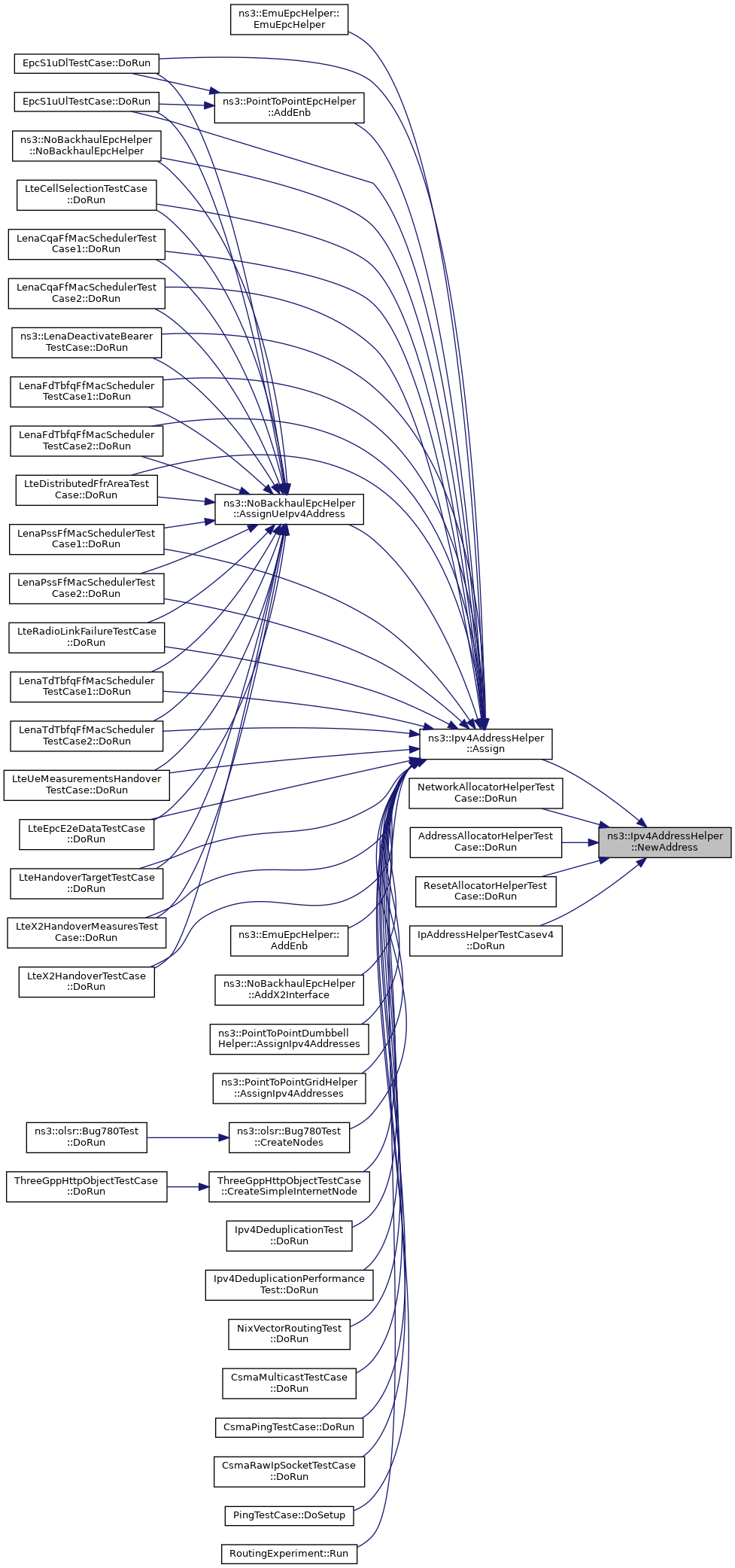 Here is the caller graph for this function:| Ipv4Address ns3::Ipv4AddressHelper::NewAddress | ( | ) |