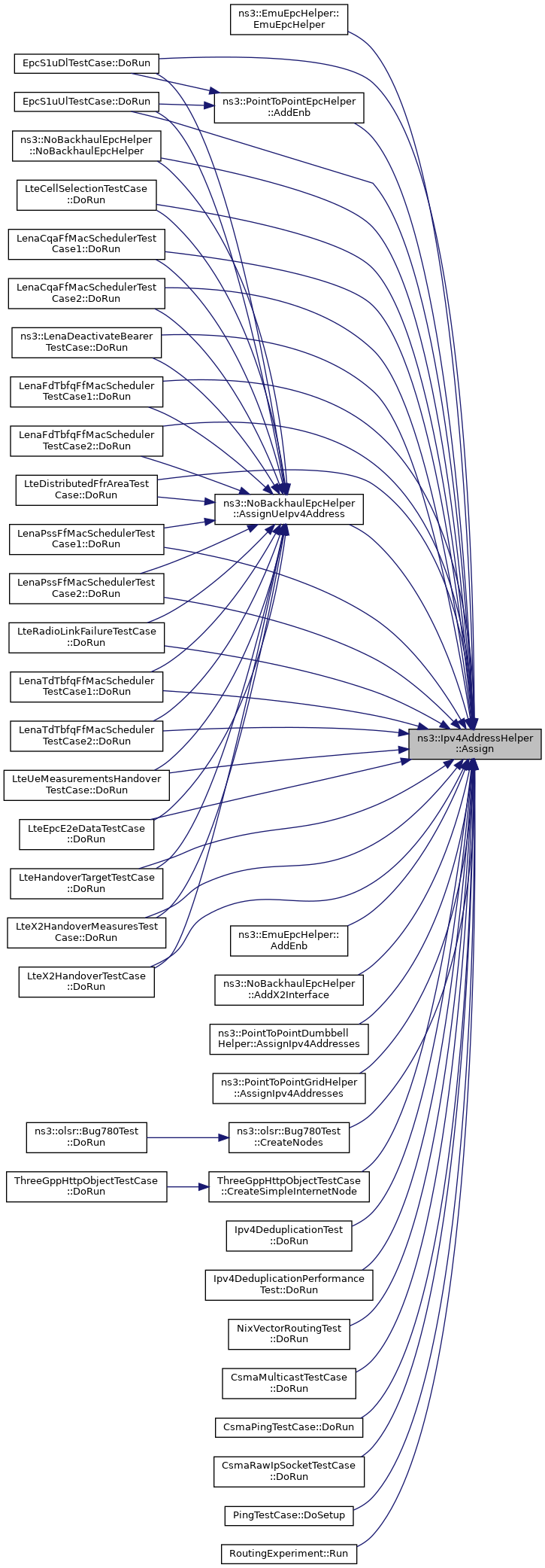Referenced by ns3::EmuEpcHelper::EmuEpcHelper(), ns3::NoBackhaulEpcHelper::NoBackhaulEpcHelper(), ns3::EmuEpcHelper::AddEnb(), ns3::PointToPointEpcHelper::AddEnb(), ns3::NoBackhaulEpcHelper::AddX2Interface(), ns3::PointToPointDumbbellHelper::AssignIpv4Addresses(), ns3::PointToPointGridHelper::AssignIpv4Addresses(), ns3::NoBackhaulEpcHelper::AssignUeIpv4Address(), ns3::olsr::Bug780Test::CreateNodes(), ThreeGppHttpObjectTestCase::CreateSimpleInternetNode(), Ipv4DeduplicationTest::DoRun(), Ipv4DeduplicationPerformanceTest::DoRun(), EpcS1uDlTestCase::DoRun(), EpcS1uUlTestCase::DoRun(), LteCellSelectionTestCase::DoRun(), LenaCqaFfMacSchedulerTestCase1::DoRun(), LenaCqaFfMacSchedulerTestCase2::DoRun(), ns3::LenaDeactivateBearerTestCase::DoRun(), LenaFdTbfqFfMacSchedulerTestCase1::DoRun(), LenaFdTbfqFfMacSchedulerTestCase2::DoRun(), LteDistributedFfrAreaTestCase::DoRun(), LenaPssFfMacSchedulerTestCase1::DoRun(), LenaPssFfMacSchedulerTestCase2::DoRun(), LteRadioLinkFailureTestCase::DoRun(), LenaTdTbfqFfMacSchedulerTestCase1::DoRun(), LenaTdTbfqFfMacSchedulerTestCase2::DoRun(), LteUeMeasurementsHandoverTestCase::DoRun(), LteEpcE2eDataTestCase::DoRun(), LteHandoverTargetTestCase::DoRun(), LteX2HandoverMeasuresTestCase::DoRun(), LteX2HandoverTestCase::DoRun(), NixVectorRoutingTest::DoRun(), CsmaMulticastTestCase::DoRun(), CsmaPingTestCase::DoRun(), CsmaRawIpSocketTestCase::DoRun(), PingTestCase::DoSetup(), and RoutingExperiment::Run().