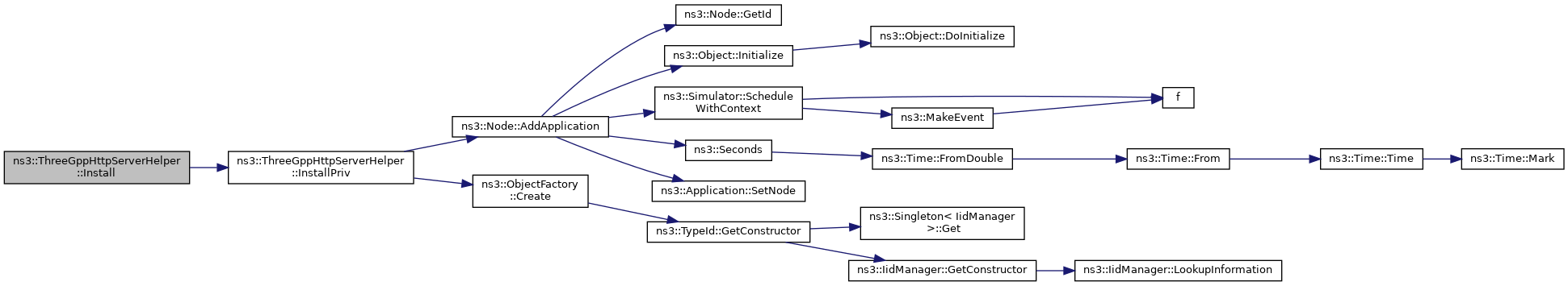 Here is the call graph for this function:| ApplicationContainer ns3::ThreeGppHttpServerHelper::Install | ( | const std::string & | nodeName | ) | const |