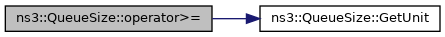 Here is the call graph for this function:| bool ns3::QueueSize::operator>= | ( | const QueueSize & | rhs | ) | const |