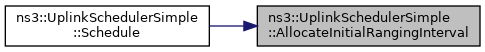 References AddUplinkAllocation(), CalculateAllocationStartTime(), ns3::UplinkScheduler::GetBs(), ns3::UplinkScheduler::GetNrIrOppsAllocated(), ns3::UplinkScheduler::GetTimeStampIrInterval(), ns3::Simulator::Now(), NS_LOG_DEBUG, ns3::Seconds(), ns3::OfdmUlMapIe::SetCid(), ns3::UplinkScheduler::SetIsIrIntrvlAllocated(), ns3::UplinkScheduler::SetNrIrOppsAllocated(), ns3::OfdmUlMapIe::SetStartTime(), ns3::UplinkScheduler::SetTimeStampIrInterval(), ns3::OfdmUlMapIe::SetUiuc(), and ns3::OfdmUlBurstProfile::UIUC_INITIAL_RANGING.