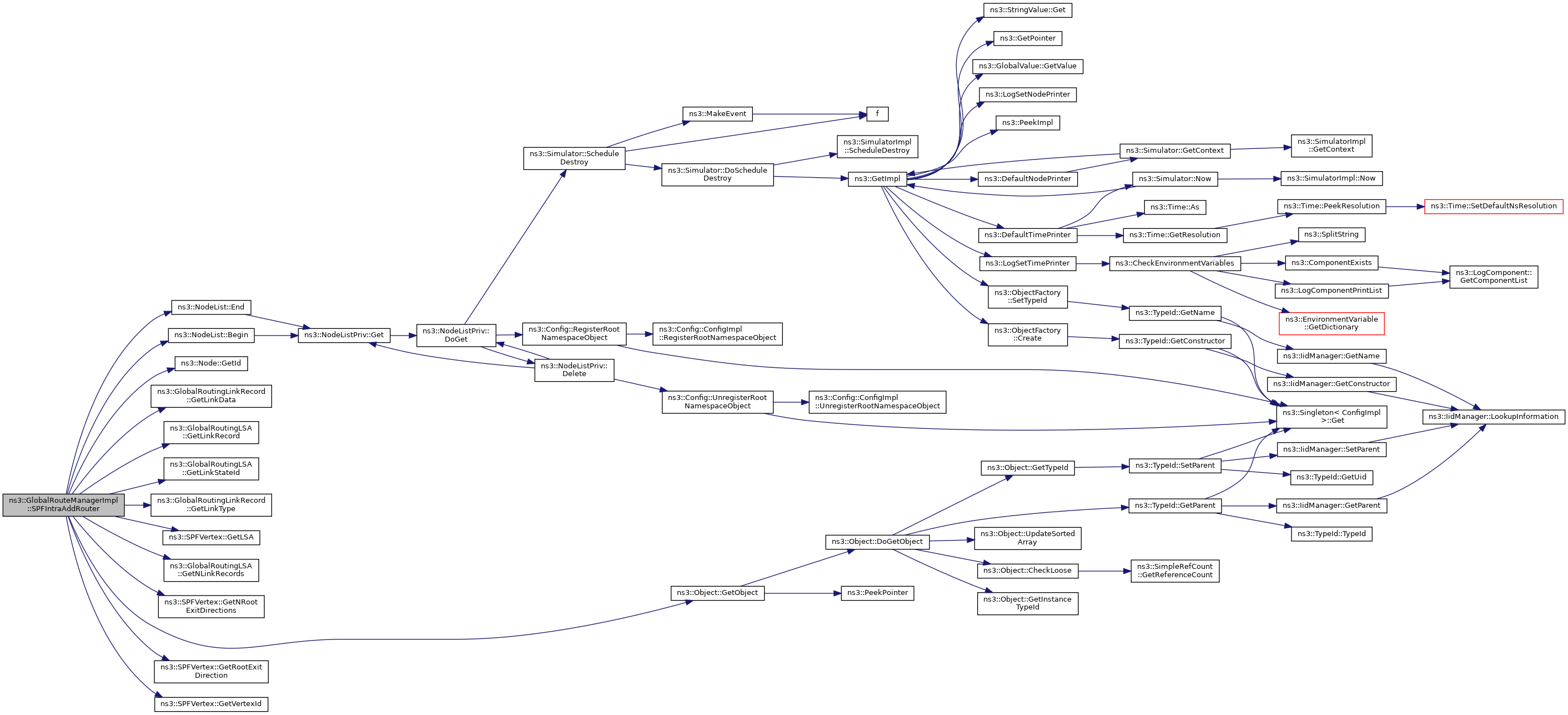 References CheckForStubNode(), ns3::SPFVertex::ClearVertexProcessed(), ns3::GlobalRouteManagerLSDB::GetExtLSA(), ns3::GlobalRoutingLSA::GetLinkStateId(), ns3::SPFVertex::GetLSA(), ns3::GlobalRouteManagerLSDB::GetLSA(), ns3::NodeList::GetNNodes(), ns3::GlobalRouteManagerLSDB::GetNumExtLSAs(), ns3::SPFVertex::GetVertexId(), ns3::SPFVertex::GetVertexType(), ns3::GlobalRouteManagerLSDB::Initialize(), ns3::GlobalRoutingLSA::LSA_SPF_IN_SPFTREE, m_lsdb, m_spfroot, NS_ASSERT, NS_ASSERT_MSG, NS_LOG_FUNCTION, NS_LOG_LOGIC, ns3::CandidateQueue::Pop(), ProcessASExternals(), ns3::SPFVertex::SetDistanceFromRoot(), ns3::GlobalRoutingLSA::SetStatus(), ns3::CandidateQueue::Size(), SPFIntraAddRouter(), SPFIntraAddTransit(), SPFNext(), SPFProcessStubs(), SPFVertexAddParent(), ns3::SPFVertex::VertexNetwork, and ns3::SPFVertex::VertexRouter.