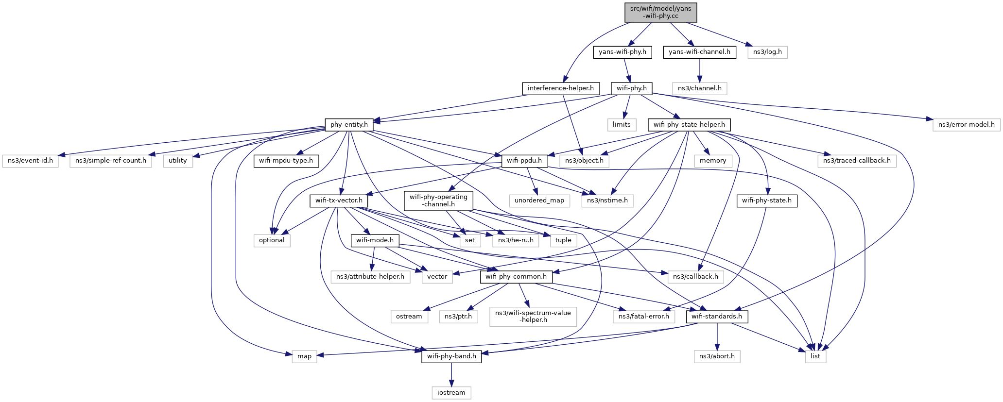 Include dependency graph for yans-wifi-phy.cc:Go to the source code of this file.