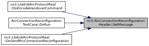 Here is the call graph for this function:| void ns3::RrcConnectionReconfigurationHeader::SetMessage | ( | LteRrcSap::RrcConnectionReconfiguration | msg | ) |