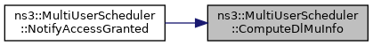 Here is the caller graph for this function:| MultiUserScheduler::TxFormat ns3::MultiUserScheduler::NotifyAccessGranted | ( | Ptr< QosTxop > | edca, |