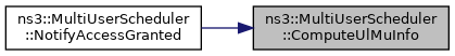 Here is the call graph for this function:| MultiUserScheduler::UlMuInfo & ns3::MultiUserScheduler::GetUlMuInfo | ( | uint8_t | linkId | ) |