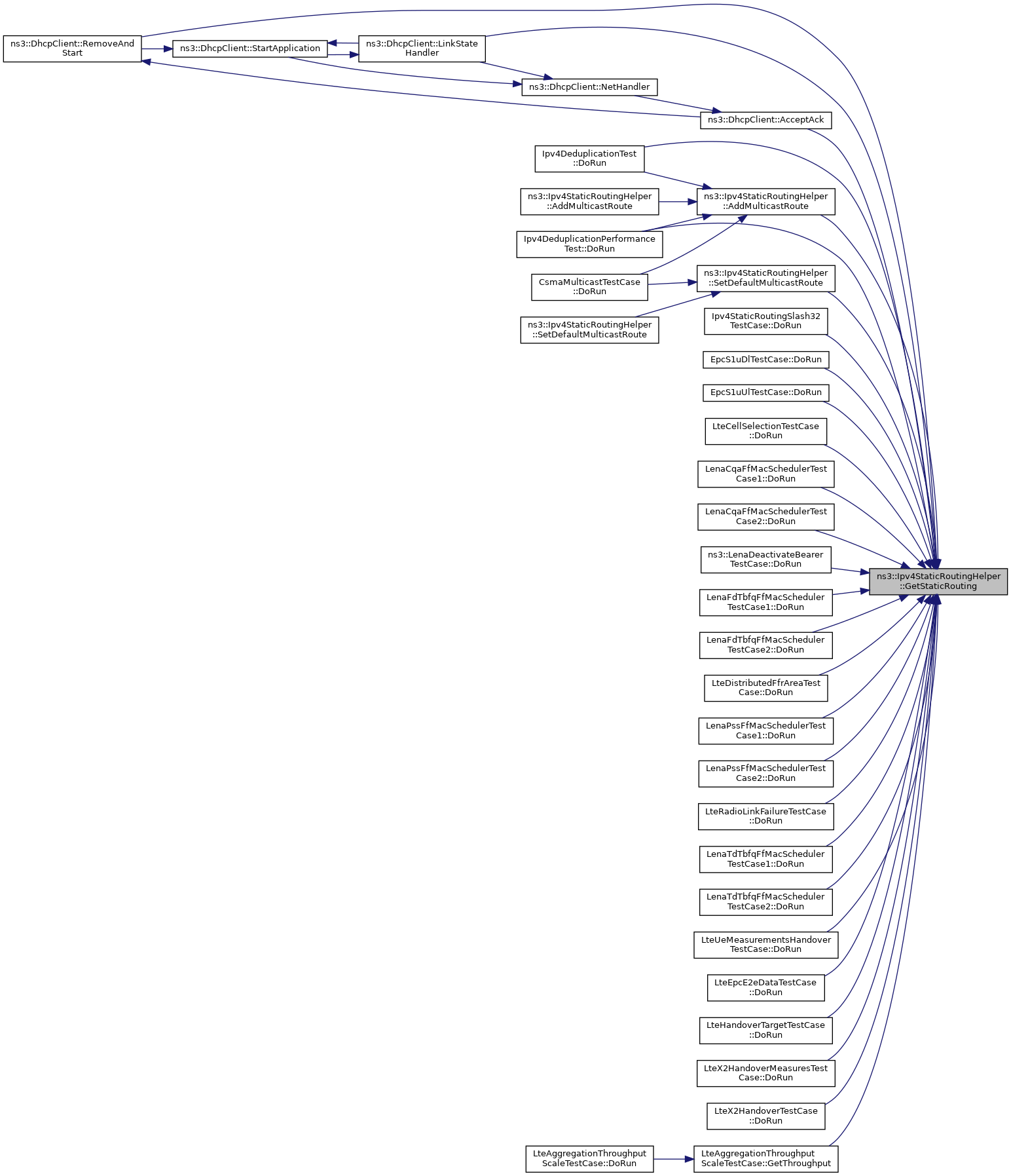 Referenced by ns3::DhcpClient::AcceptAck(), AddMulticastRoute(), Ipv4DeduplicationTest::DoRun(), Ipv4DeduplicationPerformanceTest::DoRun(), Ipv4StaticRoutingSlash32TestCase::DoRun(), EpcS1uDlTestCase::DoRun(), EpcS1uUlTestCase::DoRun(), LteCellSelectionTestCase::DoRun(), LenaCqaFfMacSchedulerTestCase1::DoRun(), LenaCqaFfMacSchedulerTestCase2::DoRun(), ns3::LenaDeactivateBearerTestCase::DoRun(), LenaFdTbfqFfMacSchedulerTestCase1::DoRun(), LenaFdTbfqFfMacSchedulerTestCase2::DoRun(), LteDistributedFfrAreaTestCase::DoRun(), LenaPssFfMacSchedulerTestCase1::DoRun(), LenaPssFfMacSchedulerTestCase2::DoRun(), LteRadioLinkFailureTestCase::DoRun(), LenaTdTbfqFfMacSchedulerTestCase1::DoRun(), LenaTdTbfqFfMacSchedulerTestCase2::DoRun(), LteUeMeasurementsHandoverTestCase::DoRun(), LteEpcE2eDataTestCase::DoRun(), LteHandoverTargetTestCase::DoRun(), LteX2HandoverMeasuresTestCase::DoRun(), LteX2HandoverTestCase::DoRun(), LteAggregationThroughputScaleTestCase::GetThroughput(), ns3::DhcpClient::LinkStateHandler(), ns3::DhcpClient::RemoveAndStart(), and SetDefaultMulticastRoute().