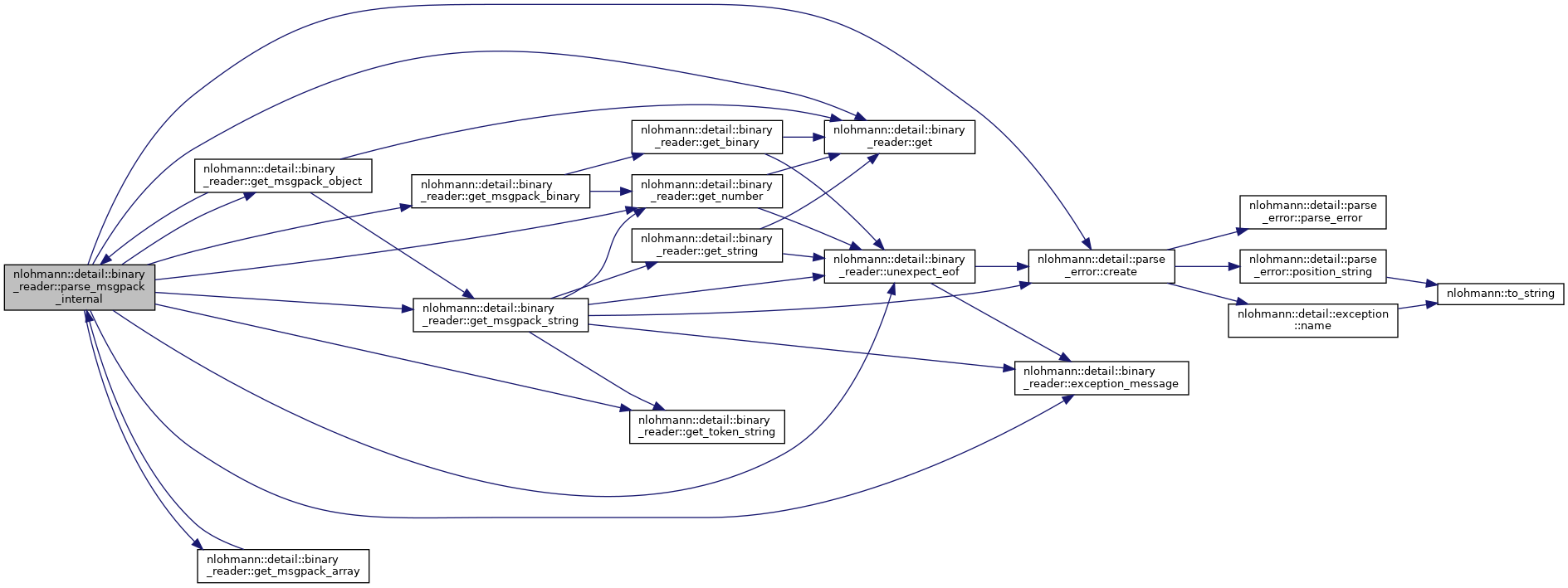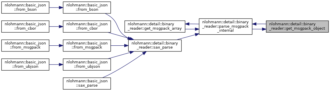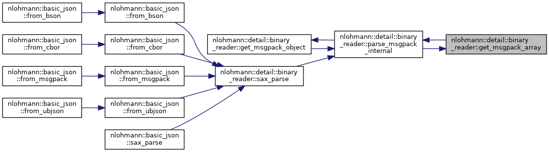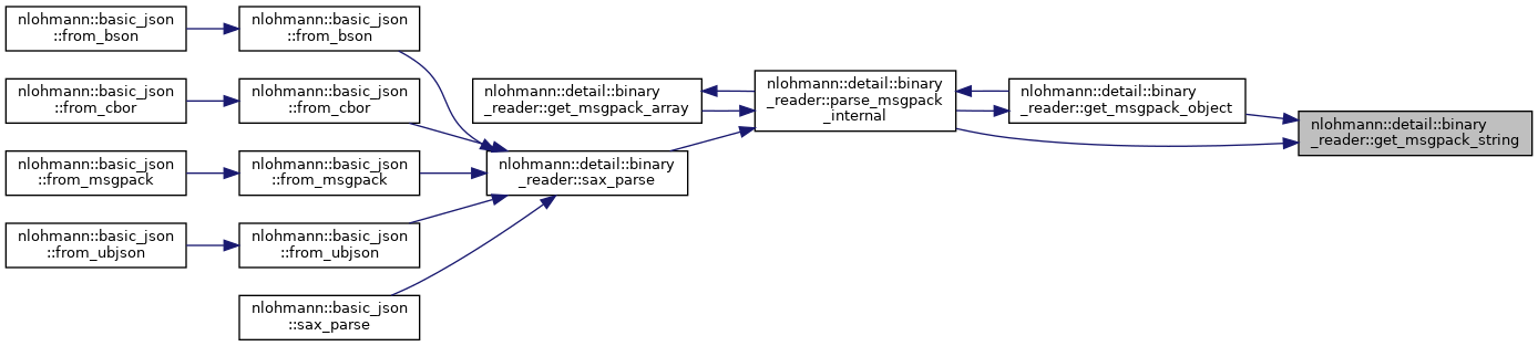 References nlohmann::detail::binary_reader< BasicJsonType, InputAdapterType, SAX >::chars_read, nlohmann::detail::parse_error::create(), nlohmann::detail::binary_reader< BasicJsonType, InputAdapterType, SAX >::current, nlohmann::detail::binary_reader< BasicJsonType, InputAdapterType, SAX >::exception_message(), nlohmann::detail::binary_reader< BasicJsonType, InputAdapterType, SAX >::get(), nlohmann::detail::binary_reader< BasicJsonType, InputAdapterType, SAX >::get_msgpack_array(), nlohmann::detail::binary_reader< BasicJsonType, InputAdapterType, SAX >::get_msgpack_binary(), nlohmann::detail::binary_reader< BasicJsonType, InputAdapterType, SAX >::get_msgpack_object(), nlohmann::detail::binary_reader< BasicJsonType, InputAdapterType, SAX >::get_msgpack_string(), nlohmann::detail::binary_reader< BasicJsonType, InputAdapterType, SAX >::get_number(), nlohmann::detail::binary_reader< BasicJsonType, InputAdapterType, SAX >::get_token_string(), nlohmann::detail::msgpack, nlohmann::detail::binary_reader< BasicJsonType, InputAdapterType, SAX >::sax, and nlohmann::detail::binary_reader< BasicJsonType, InputAdapterType, SAX >::unexpect_eof().