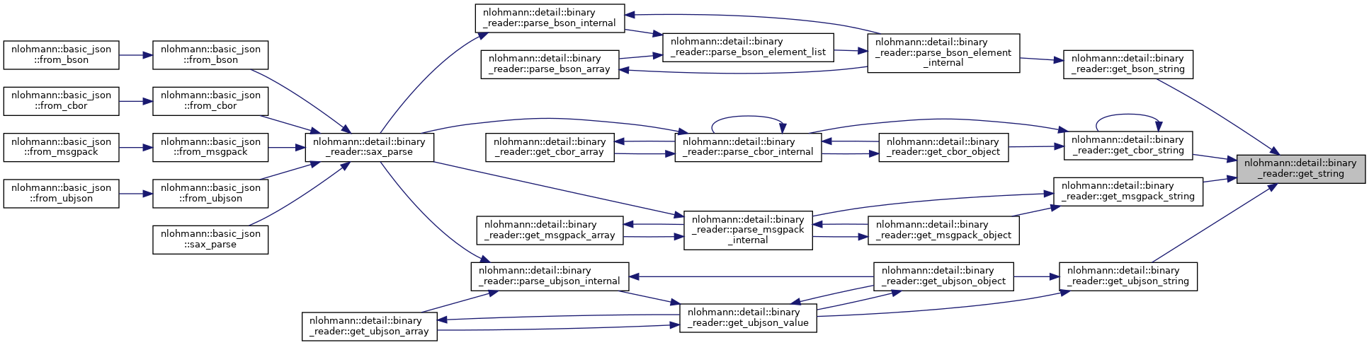 Referenced by nlohmann::detail::binary_reader< BasicJsonType, InputAdapterType, SAX >::get_bson_binary(), nlohmann::detail::binary_reader< BasicJsonType, InputAdapterType, SAX >::get_bson_string(), nlohmann::detail::binary_reader< BasicJsonType, InputAdapterType, SAX >::get_cbor_binary(), nlohmann::detail::binary_reader< BasicJsonType, InputAdapterType, SAX >::get_cbor_string(), nlohmann::detail::binary_reader< BasicJsonType, InputAdapterType, SAX >::get_msgpack_string(), nlohmann::detail::binary_reader< BasicJsonType, InputAdapterType, SAX >::get_ubjson_size_type(), nlohmann::detail::binary_reader< BasicJsonType, InputAdapterType, SAX >::get_ubjson_size_value(), nlohmann::detail::binary_reader< BasicJsonType, InputAdapterType, SAX >::get_ubjson_string(), nlohmann::detail::binary_reader< BasicJsonType, InputAdapterType, SAX >::get_ubjson_value(), nlohmann::detail::binary_reader< BasicJsonType, InputAdapterType, SAX >::parse_cbor_internal(), nlohmann::detail::binary_reader< BasicJsonType, InputAdapterType, SAX >::parse_msgpack_internal(), and nlohmann::detail::binary_reader< BasicJsonType, InputAdapterType, SAX >::sax_parse().