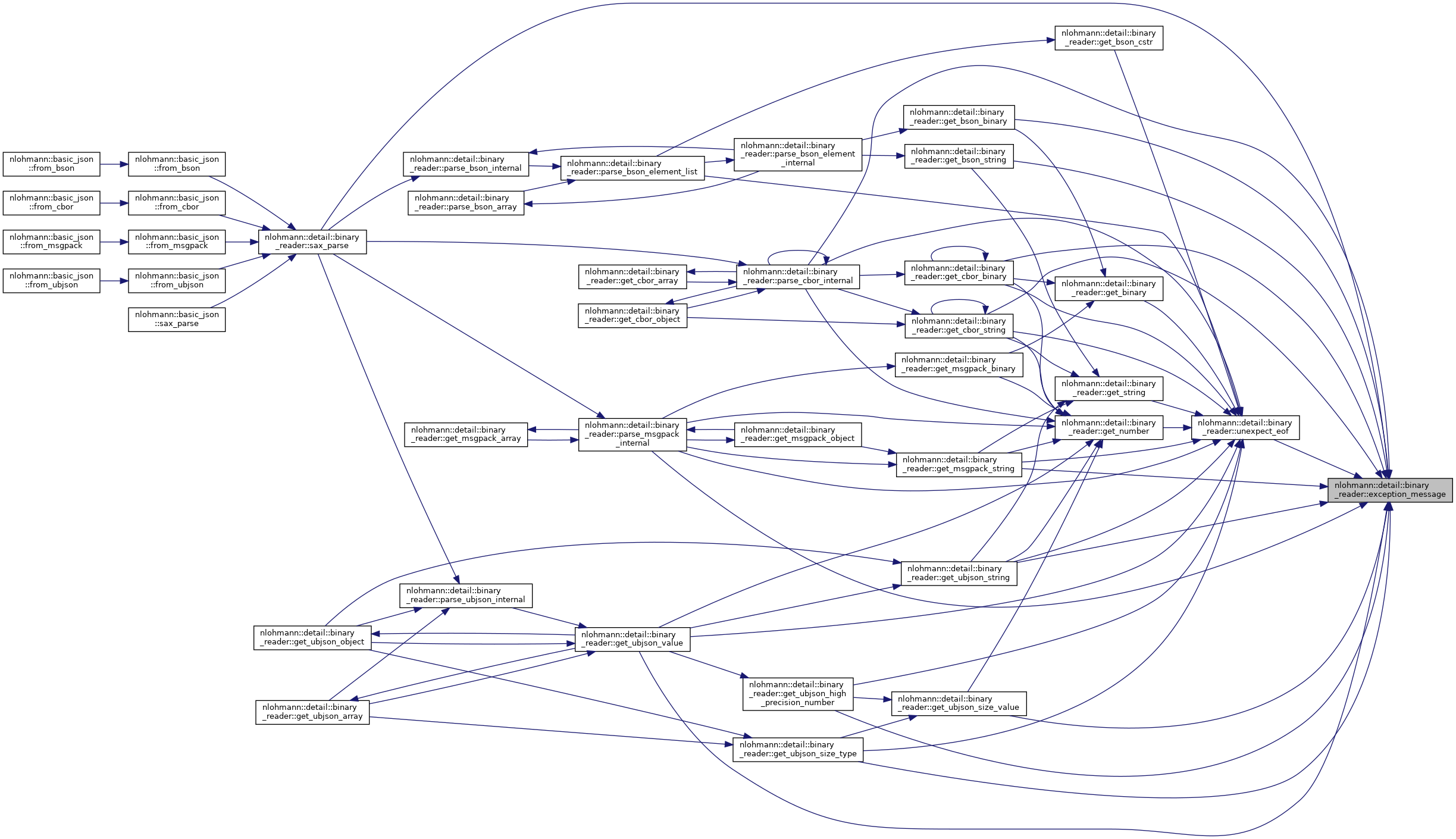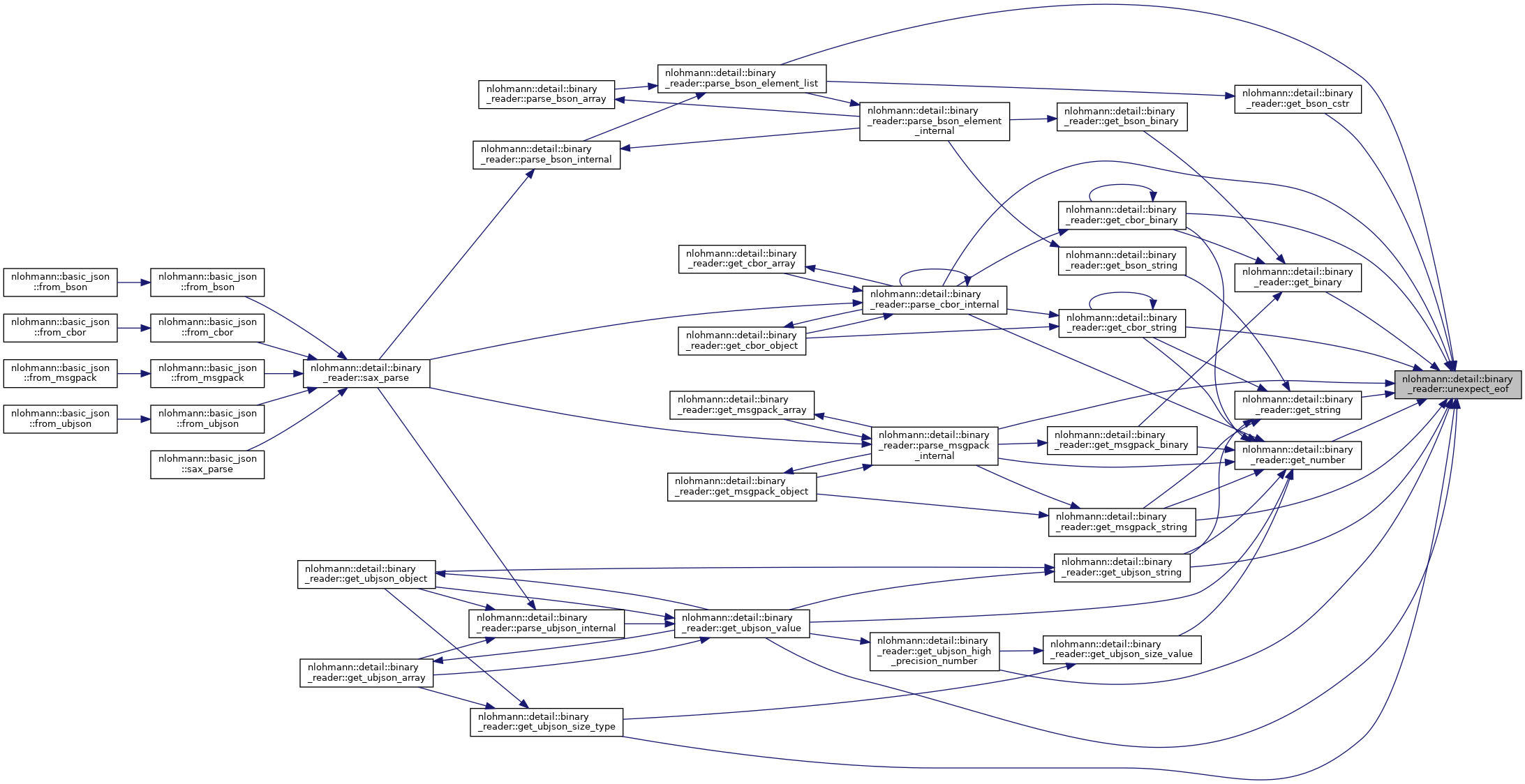 Referenced by nlohmann::detail::binary_reader< BasicJsonType, InputAdapterType, SAX >::get_bson_binary(), nlohmann::detail::binary_reader< BasicJsonType, InputAdapterType, SAX >::get_bson_string(), nlohmann::detail::binary_reader< BasicJsonType, InputAdapterType, SAX >::get_cbor_binary(), nlohmann::detail::binary_reader< BasicJsonType, InputAdapterType, SAX >::get_cbor_string(), nlohmann::detail::binary_reader< BasicJsonType, InputAdapterType, SAX >::get_msgpack_string(), nlohmann::detail::binary_reader< BasicJsonType, InputAdapterType, SAX >::get_ubjson_high_precision_number(), nlohmann::detail::binary_reader< BasicJsonType, InputAdapterType, SAX >::get_ubjson_size_type(), nlohmann::detail::binary_reader< BasicJsonType, InputAdapterType, SAX >::get_ubjson_size_value(), nlohmann::detail::binary_reader< BasicJsonType, InputAdapterType, SAX >::get_ubjson_string(), nlohmann::detail::binary_reader< BasicJsonType, InputAdapterType, SAX >::get_ubjson_value(), nlohmann::detail::binary_reader< BasicJsonType, InputAdapterType, SAX >::parse_cbor_internal(), nlohmann::detail::binary_reader< BasicJsonType, InputAdapterType, SAX >::parse_msgpack_internal(), nlohmann::detail::binary_reader< BasicJsonType, InputAdapterType, SAX >::sax_parse(), and nlohmann::detail::binary_reader< BasicJsonType, InputAdapterType, SAX >::unexpect_eof().
