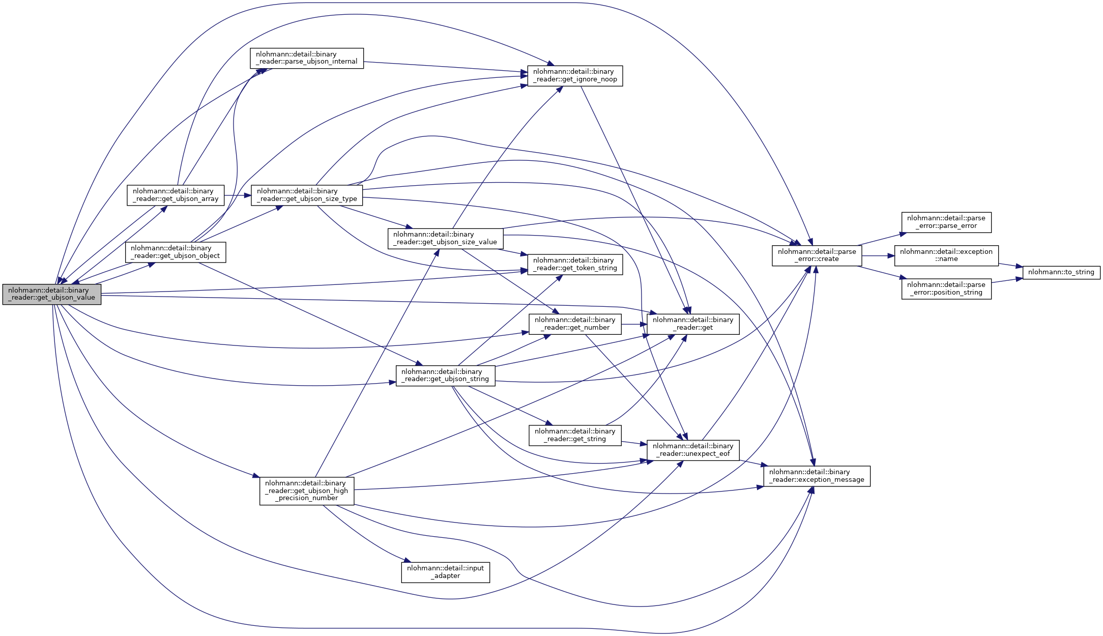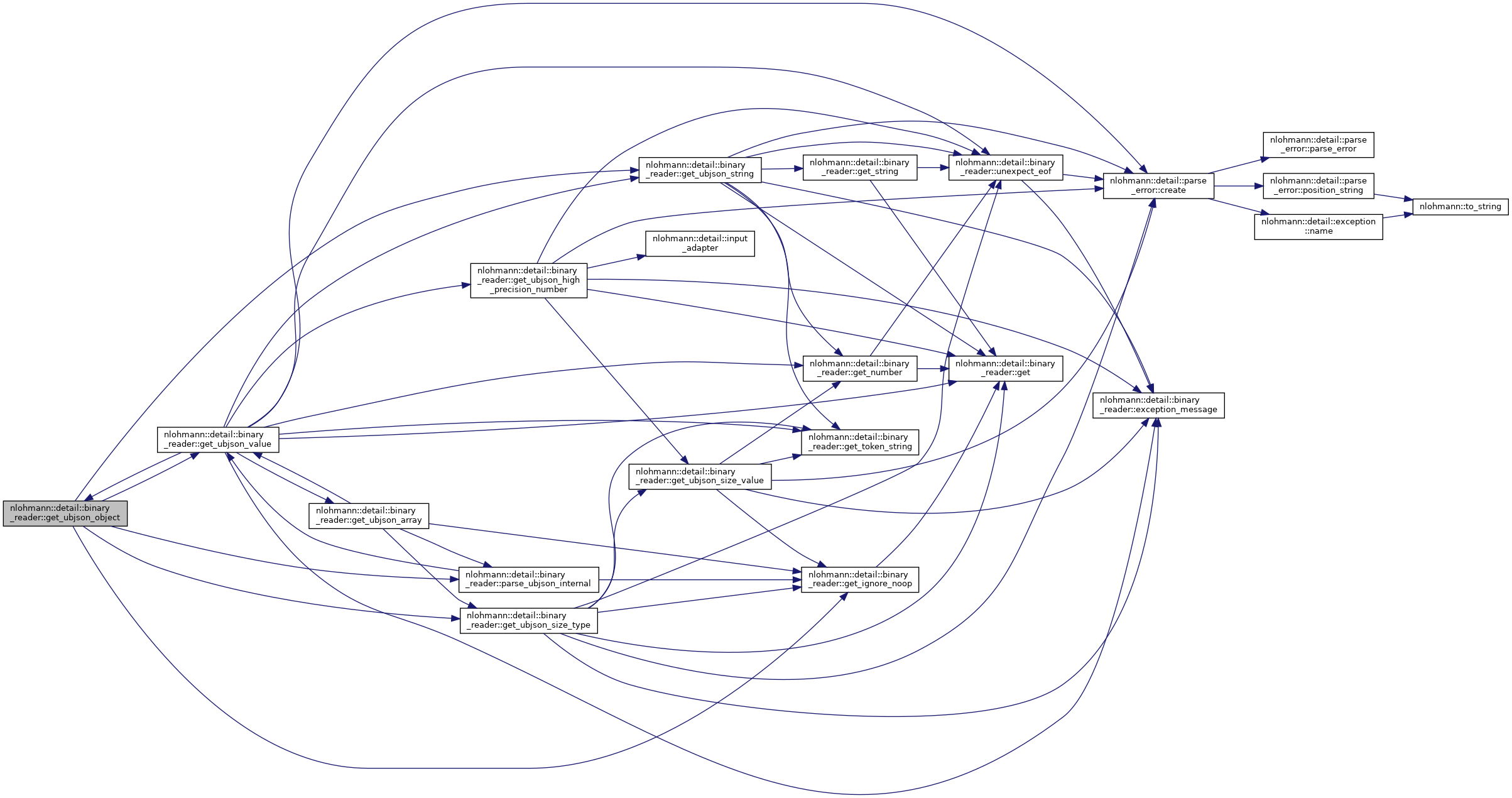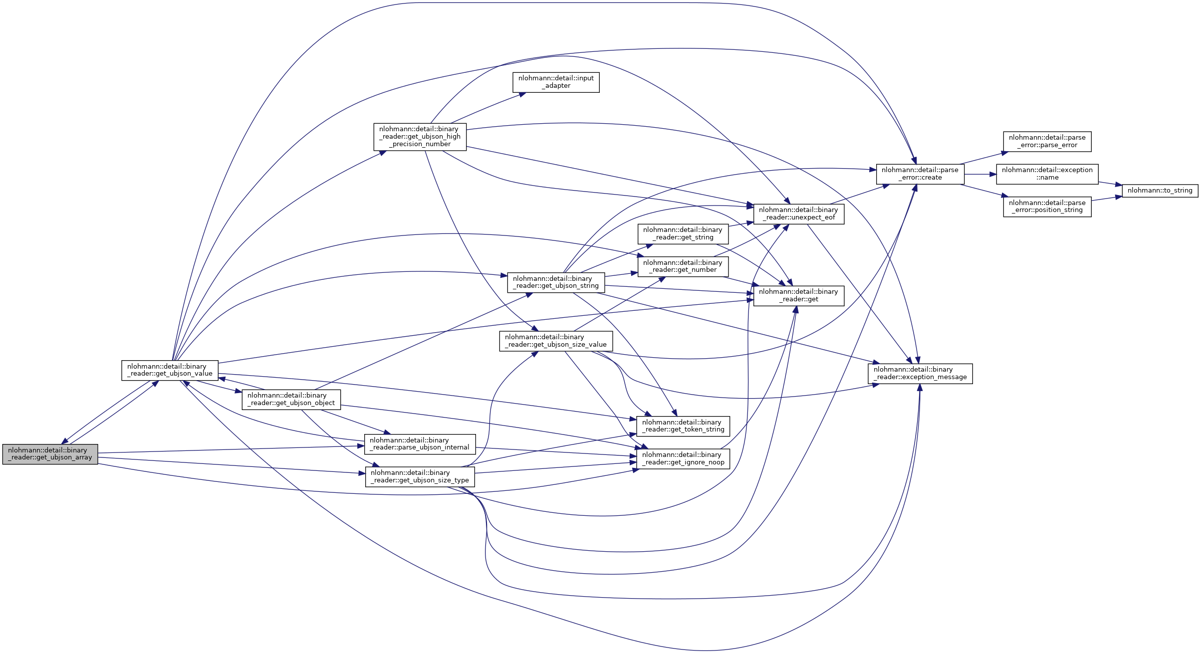 References nlohmann::detail::binary_reader< BasicJsonType, InputAdapterType, SAX >::chars_read, nlohmann::detail::parse_error::create(), nlohmann::detail::binary_reader< BasicJsonType, InputAdapterType, SAX >::current, nlohmann::detail::binary_reader< BasicJsonType, InputAdapterType, SAX >::exception_message(), nlohmann::detail::binary_reader< BasicJsonType, InputAdapterType, SAX >::get(), nlohmann::detail::binary_reader< BasicJsonType, InputAdapterType, SAX >::get_number(), nlohmann::detail::binary_reader< BasicJsonType, InputAdapterType, SAX >::get_token_string(), nlohmann::detail::binary_reader< BasicJsonType, InputAdapterType, SAX >::get_ubjson_array(), nlohmann::detail::binary_reader< BasicJsonType, InputAdapterType, SAX >::get_ubjson_high_precision_number(), nlohmann::detail::binary_reader< BasicJsonType, InputAdapterType, SAX >::get_ubjson_object(), nlohmann::detail::binary_reader< BasicJsonType, InputAdapterType, SAX >::get_ubjson_string(), JSON_HEDLEY_UNLIKELY, nlohmann::detail::binary_reader< BasicJsonType, InputAdapterType, SAX >::sax, nlohmann::detail::ubjson, and nlohmann::detail::binary_reader< BasicJsonType, InputAdapterType, SAX >::unexpect_eof().