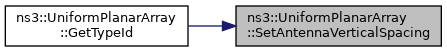 Here is the caller graph for this function:| void ns3::UniformPlanarArray::SetAntennaVerticalSpacing | ( | double | s | ) |