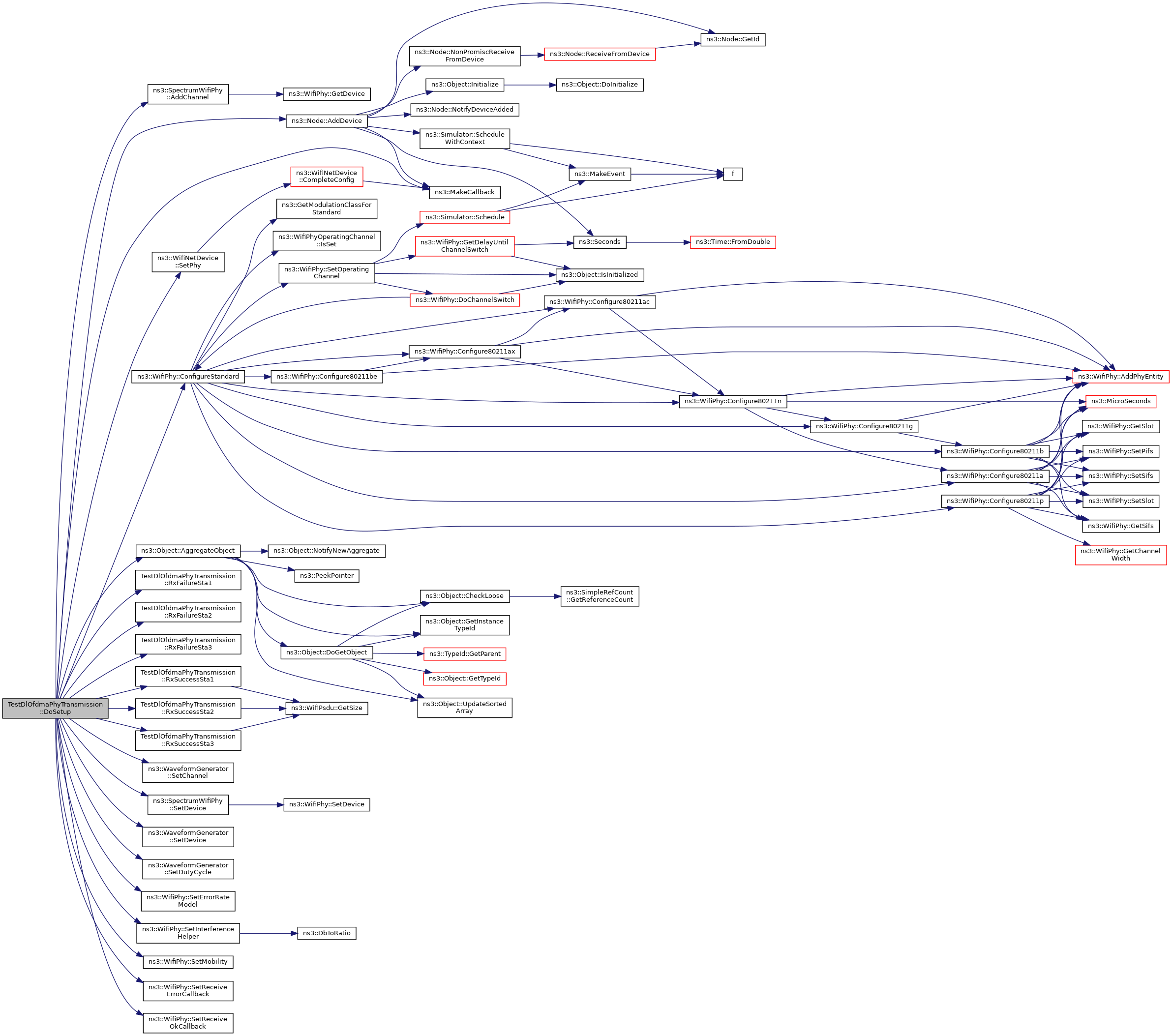 References ns3::SpectrumWifiPhy::AddChannel(), ns3::Node::AddDevice(), ns3::Object::AggregateObject(), ns3::WifiPhy::ConfigureStandard(), m_frequency, m_phyAp, m_phyInterferer, m_phySta1, m_phySta2, m_phySta3, ns3::MakeCallback(), RxFailureSta1(), RxFailureSta2(), RxFailureSta3(), RxSuccessSta1(), RxSuccessSta2(), RxSuccessSta3(), ns3::WaveformGenerator::SetChannel(), ns3::SpectrumWifiPhy::SetDevice(), ns3::WaveformGenerator::SetDevice(), ns3::WaveformGenerator::SetDutyCycle(), ns3::WifiPhy::SetErrorRateModel(), ns3::WifiPhy::SetInterferenceHelper(), ns3::WifiPhy::SetMobility(), ns3::WifiNetDevice::SetPhy(), ns3::WifiPhy::SetReceiveErrorCallback(), ns3::WifiPhy::SetReceiveOkCallback(), and ns3::WIFI_STANDARD_80211ax.
