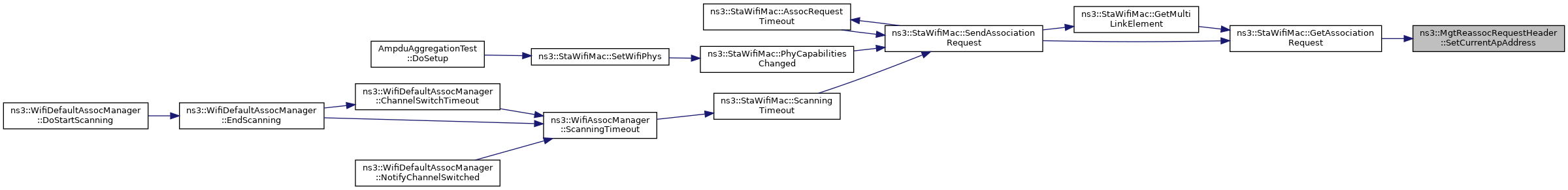 Here is the call graph for this function:| void ns3::MgtReassocRequestHeader::SetCurrentApAddress | ( | Mac48Address | currentApAddr | ) |