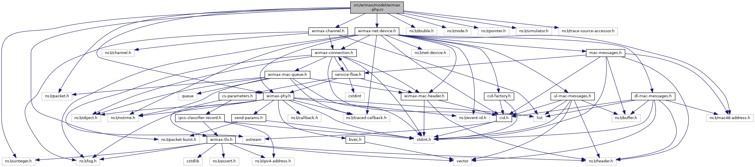 Include dependency graph for wimax-phy.cc:Go to the source code of this file.