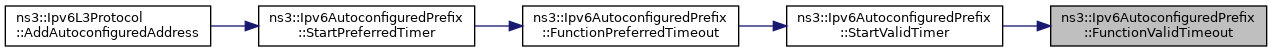 References FunctionValidTimeout(), m_preferredLifeTime, m_prefix, m_validLifeTime, m_validTimer, NS_LOG_INFO, ns3::Timer::Schedule(), ns3::Seconds(), ns3::Timer::SetDelay(), and ns3::Timer::SetFunction().