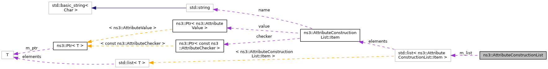 Collaboration diagram for ns3::AttributeConstructionList:Classes | |