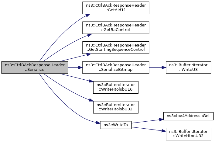 References ns3::BlockAckType::BASIC, ns3::BlockAckType::COMPRESSED, ns3::BlockAckType::EXTENDED_COMPRESSED, GetAid11(), GetBaControl(), GetStartingSequenceControl(), m_baInfo, m_baType, ns3::BlockAckType::m_variant, ns3::BlockAckType::MULTI_STA, ns3::BlockAckType::MULTI_TID, NS_FATAL_ERROR, SerializeBitmap(), two-ray-to-three-gpp-ch-calibration::start, ns3::Buffer::Iterator::WriteHtolsbU16(), ns3::Buffer::Iterator::WriteHtolsbU32(), and ns3::WriteTo().